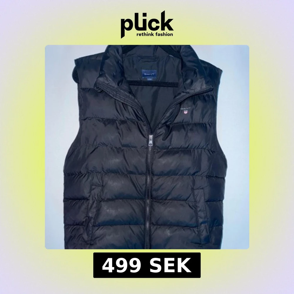Svart dunväst från GANT med dragkedja framtill. Västen är välbehandlad och har inga större täcken på användning