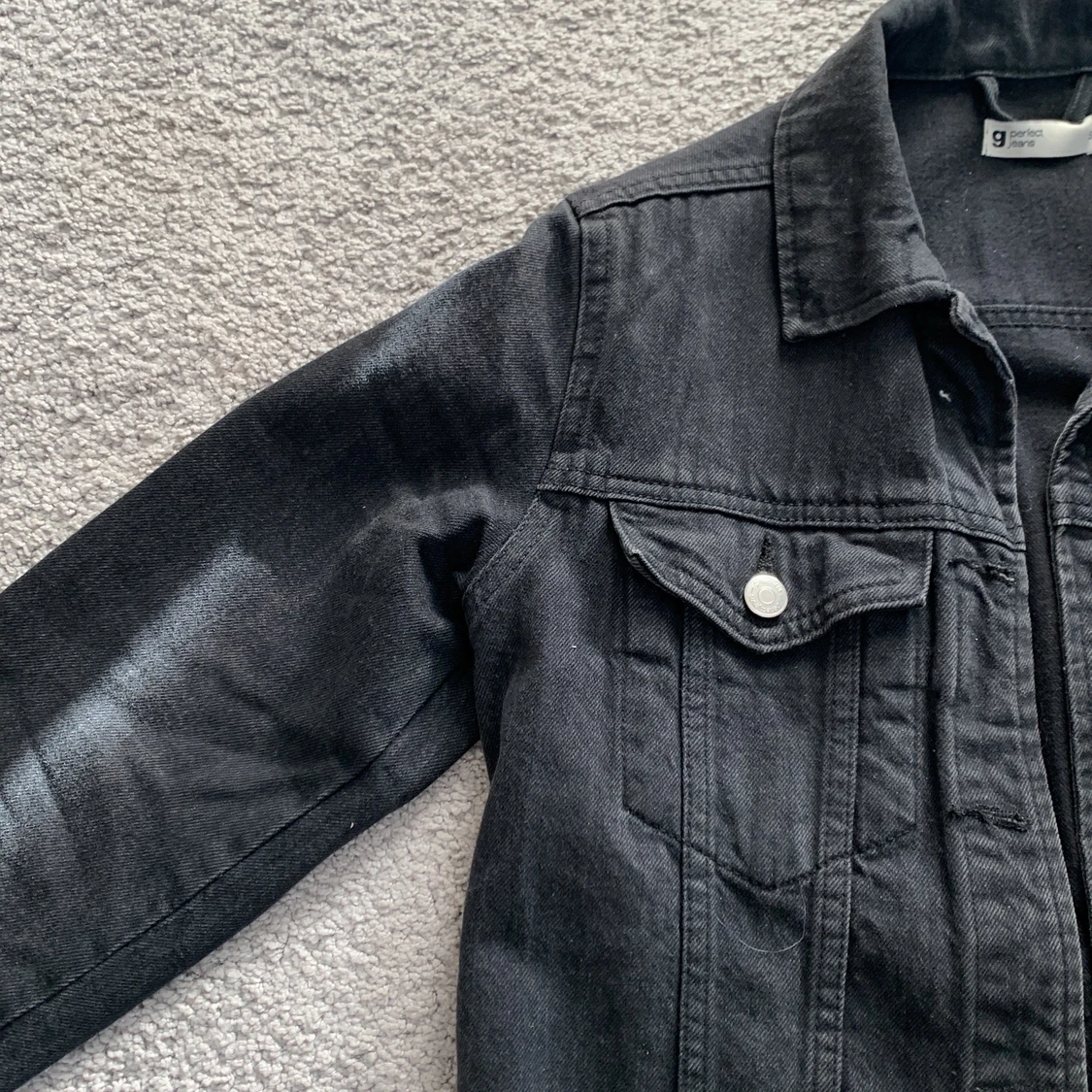 Jeans jacka från ginatricot. Använd en hel del. Den är lite i färgen lite urtvättade svart🤩. Säljer då den inte anvönds. Skriv vid intresse💕