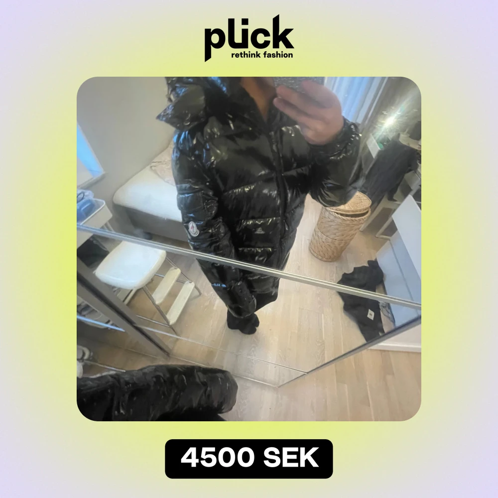 Säljer en snygg svart glansig dunjacka från Moncler. Den har en stor huva och dragkedja framtill. Perfekt för kalla vinterdagar när du vill hålla dig varm och stilren. Jackan är i mycket bra skick och passar perfekt för både vardag och festliga tillfällen. Skriv för mer bilder🥰