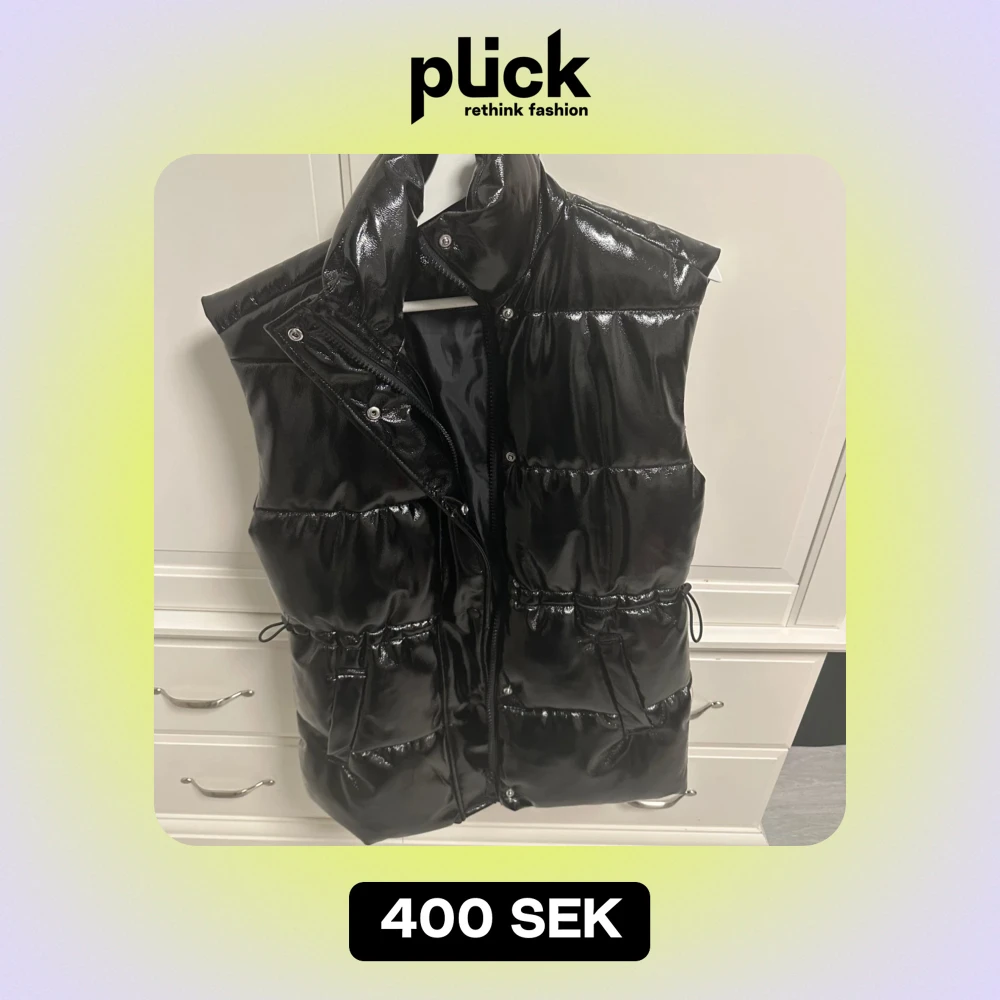 Snygg svart glansig dunväst i mycket bra skick. Perfekt för höst och vinter med dragkedja och knappar framtill. Västen har en quiltad design och är normal i passformen. Den är både stilren och praktisk för kyligare dagar. Storlek XXS, men mer åt XS. Kan dessutom töjas ut lite till S vid kanterna