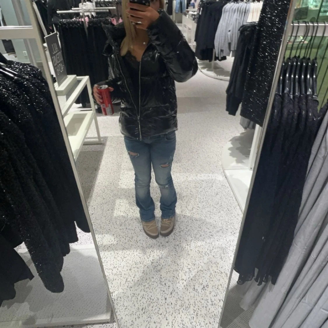 Säljer en svart, glansig pufferjacka XXS passar dom som är 12-14 år, samma som XS med dragkedja och hög krage. Jackan har en schysst oversized look och är perfekt för kalla dagar. Fylld med syntetmaterial och har långa ärmar samt en rejäl huva som skyddar mot blåst.