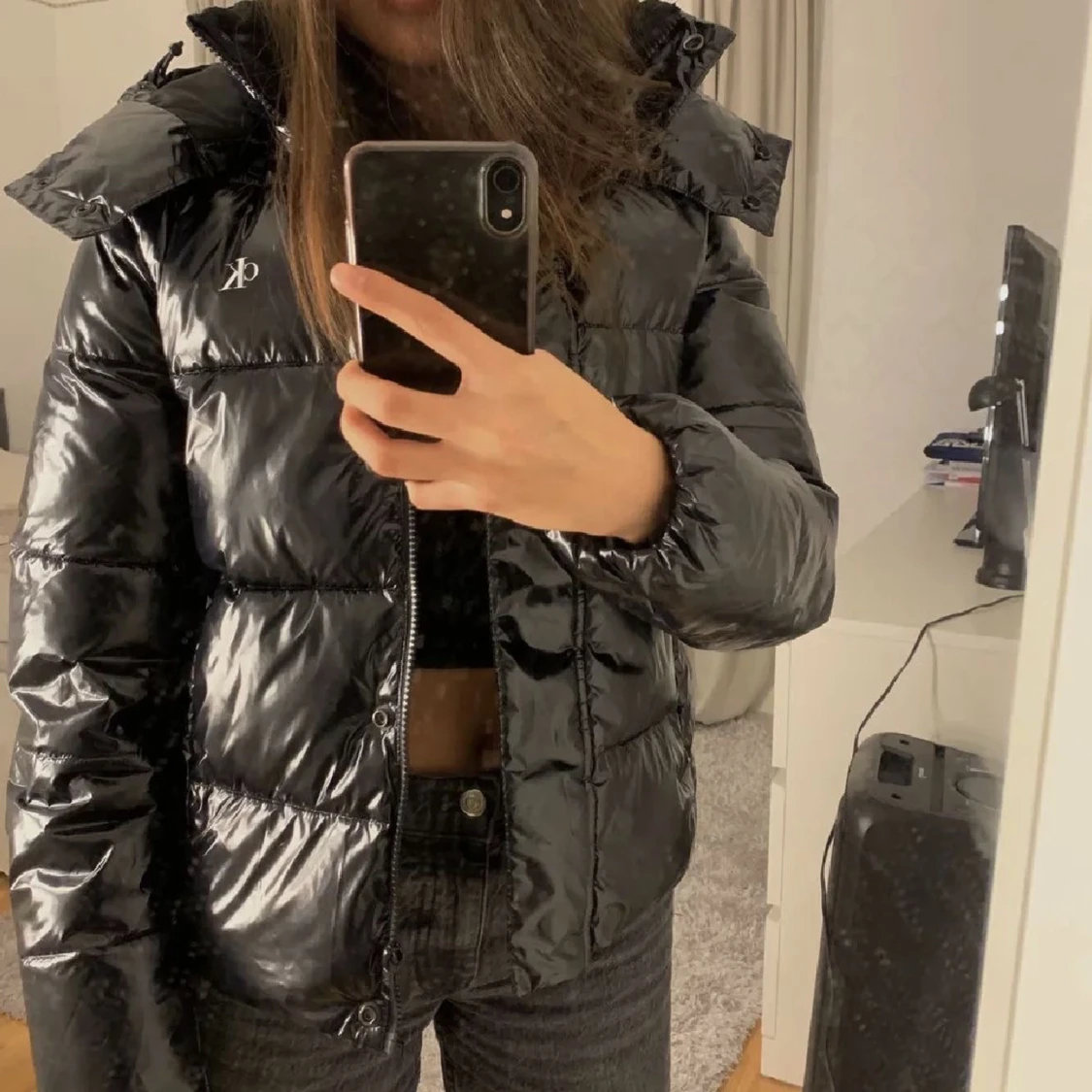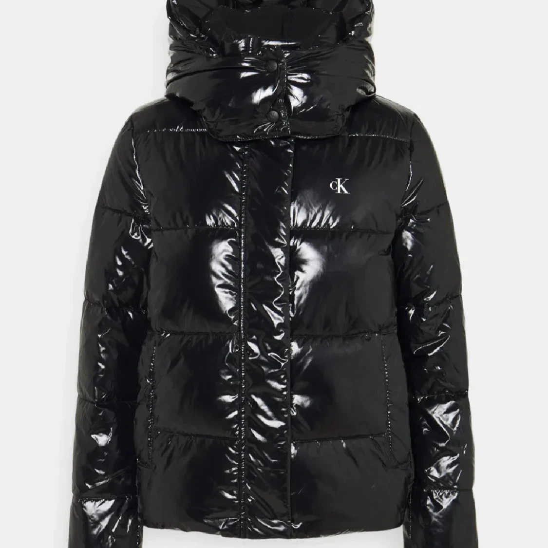 Säljer en svart, glansig pufferjacka från Calvin Klein med stor huva och diskret CK-logga på bröstet. Jackan har dragkedja framtill, den är köppt förra året och nästan alldrig andvänd så i super skick. slutsåld på hemsidan, super fin!❤️🔥passar Xs/S