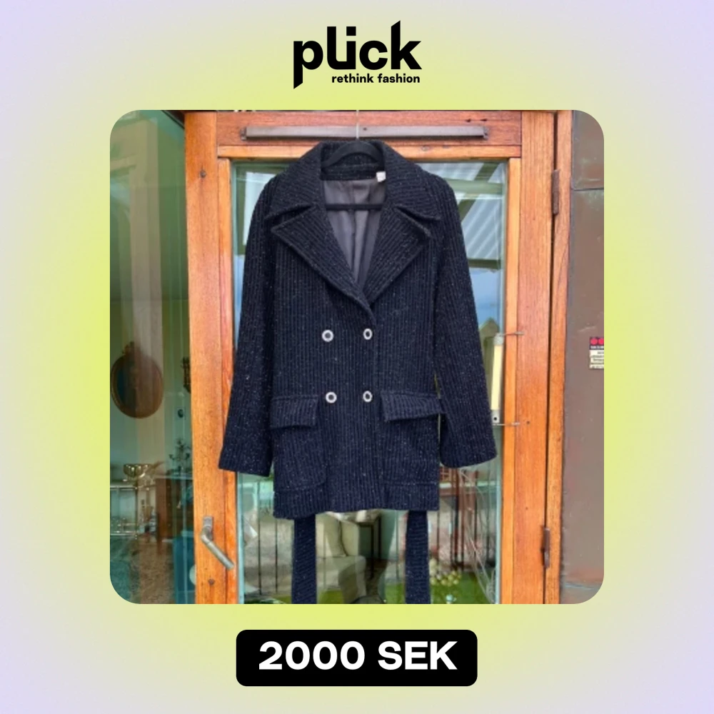 Svart vintage kavaj från Gibi Roma. Material i rå ull. Storlek 38 Har små glitter detaljer över hela kavajen och kristaller i knappar. Dubbelknäppning framtill och en bälte i midjan. Två fickor framtill. Myceket gott skick🌈