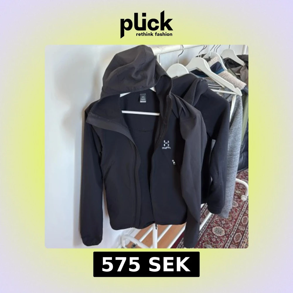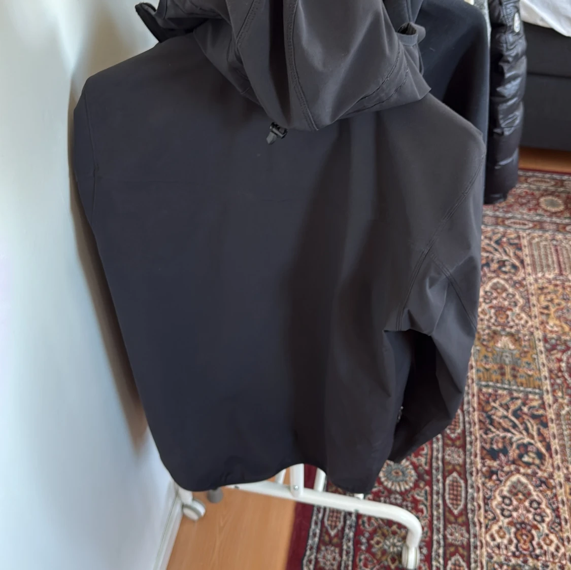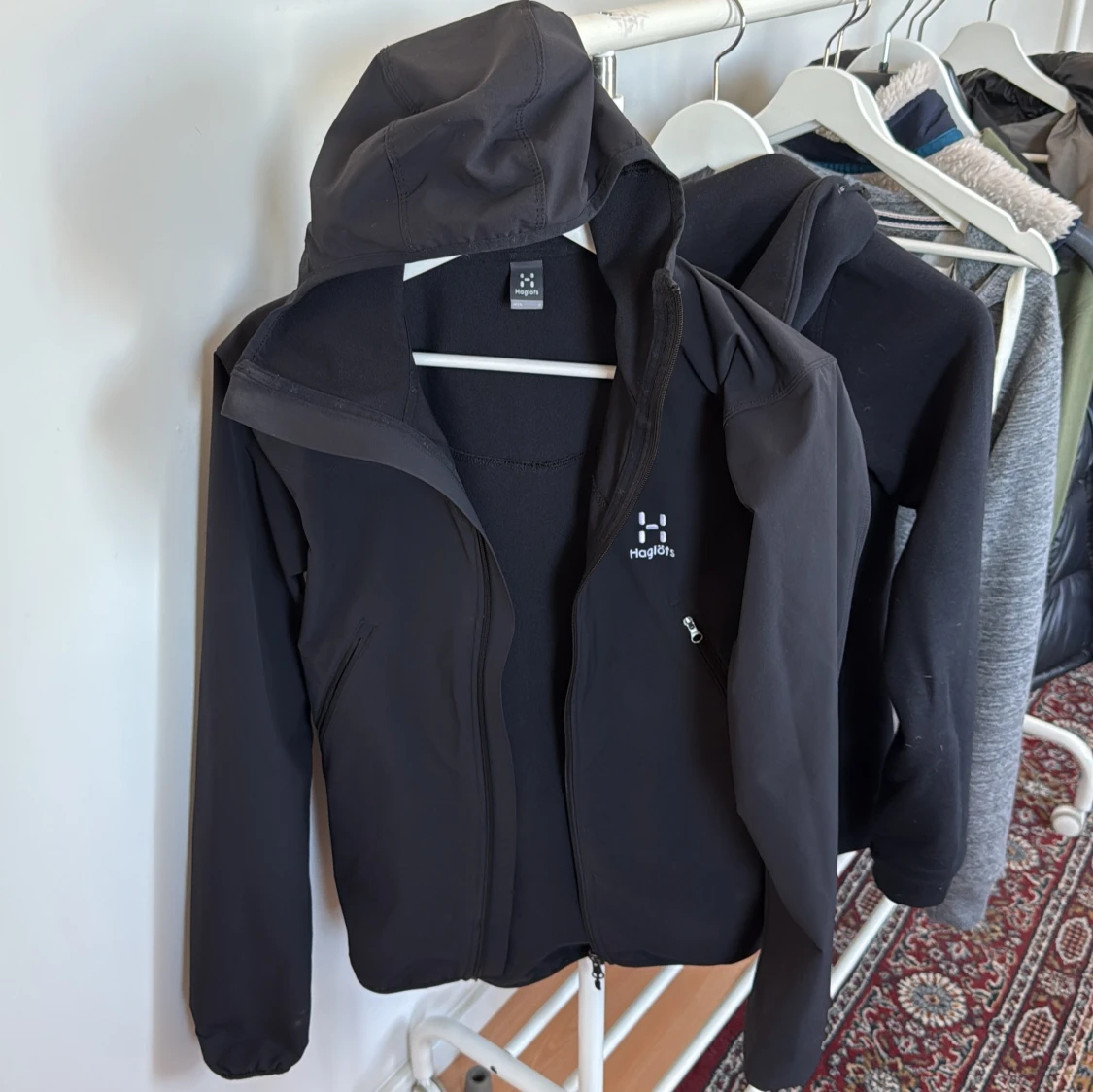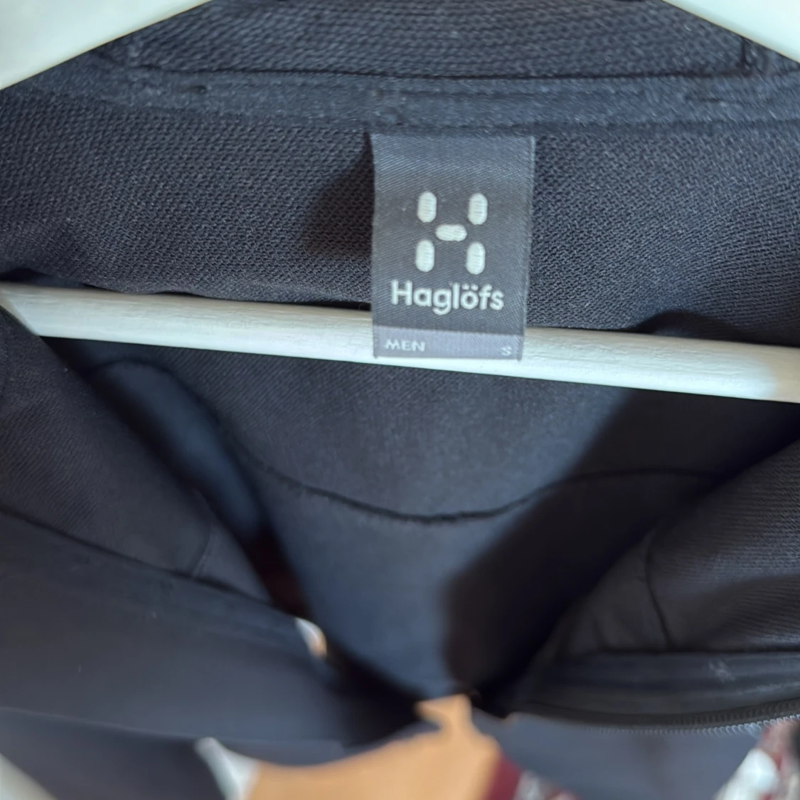 En haglöfs jacka i storlek s. Jackan är i bra skick generellt förutom en defekt som är ett hål i ena arm kanten längst ut. Så det går att sy över det eller kan man bara vika in kanten så ser man inget. För fler frågor skriv privat☺️