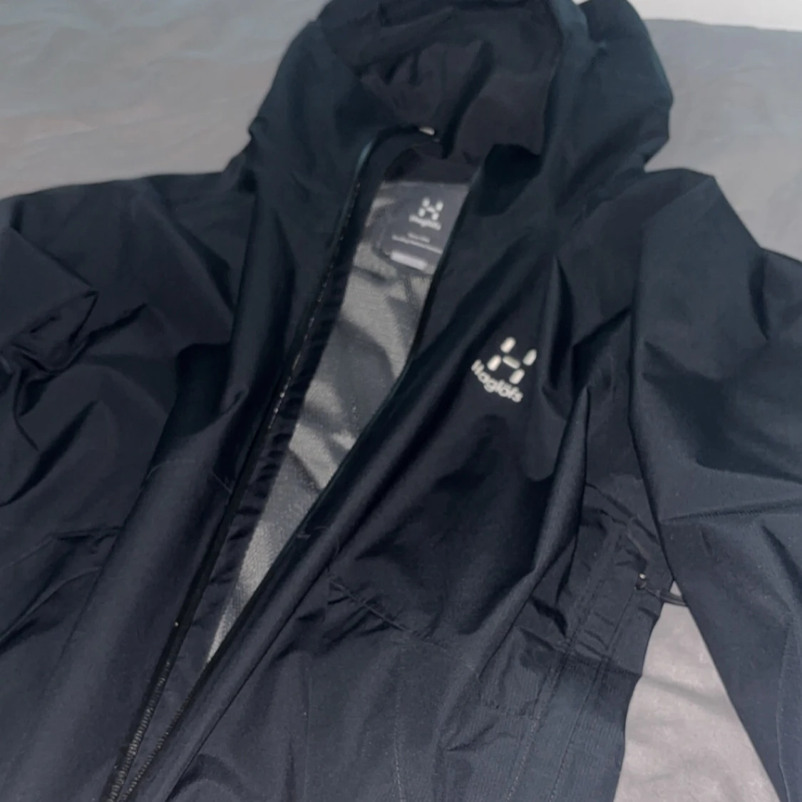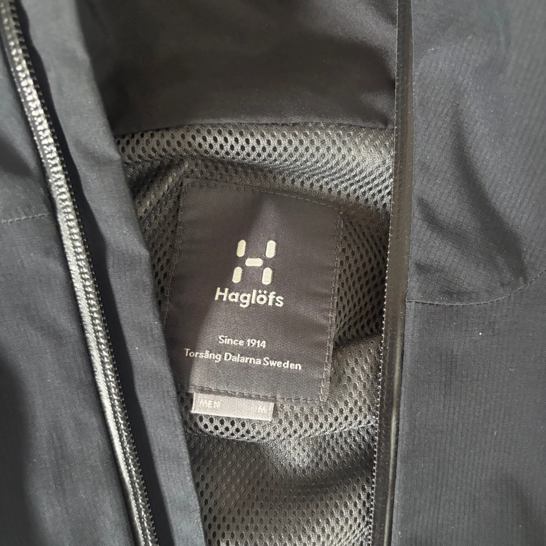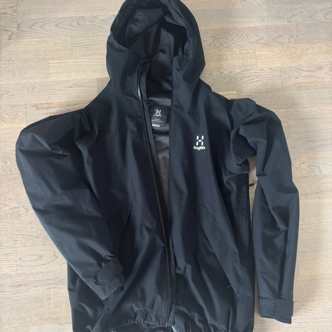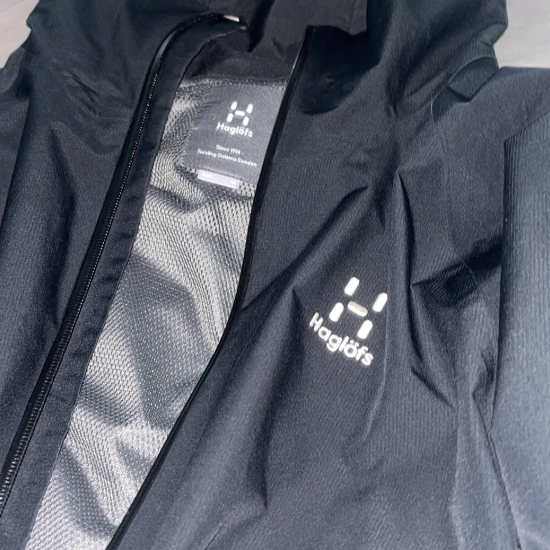 Storlek ”M” . Skriv dm för prisförslag samt video! Säljer en svart vindjacka från Haglöfs med huva och hel dragkedja framtill. Jackan har diskret logga på bröstet, två sidofickor och meshfoder på insidan. Perfekt för blåsiga dagar och outdoor-aktiviteter. Enkel, stilren och funktionell design.