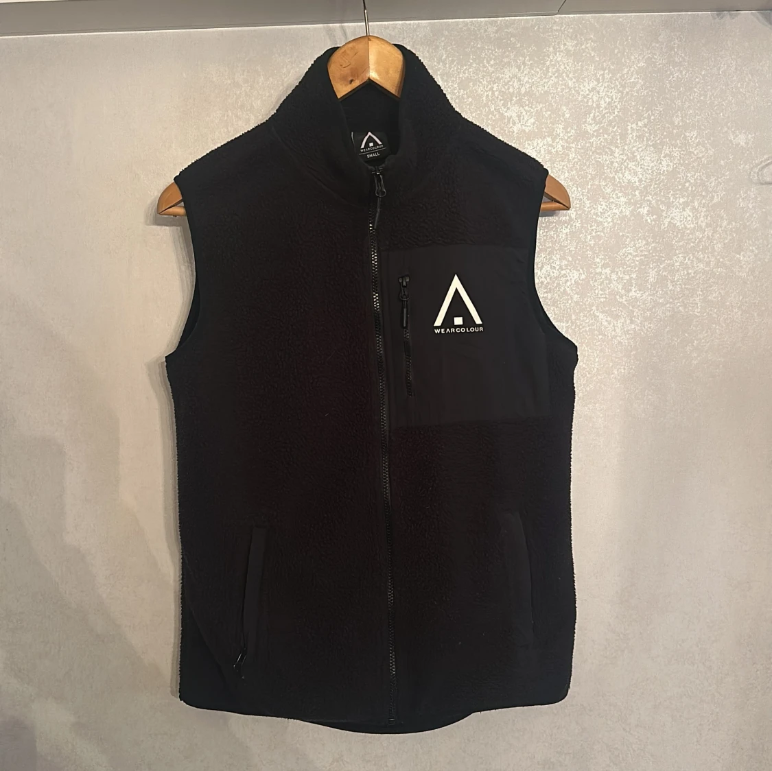 Säljer en snygg svart Herr fleeceväst från Wearcolour med dragkedja och en praktisk bröstficka. Perfekt för lager-på-lager under kyliga dagar. Västen har en stilren design med logotyp på bröstet. Den är använd ett fåtal gånger och nypris är 500kr.