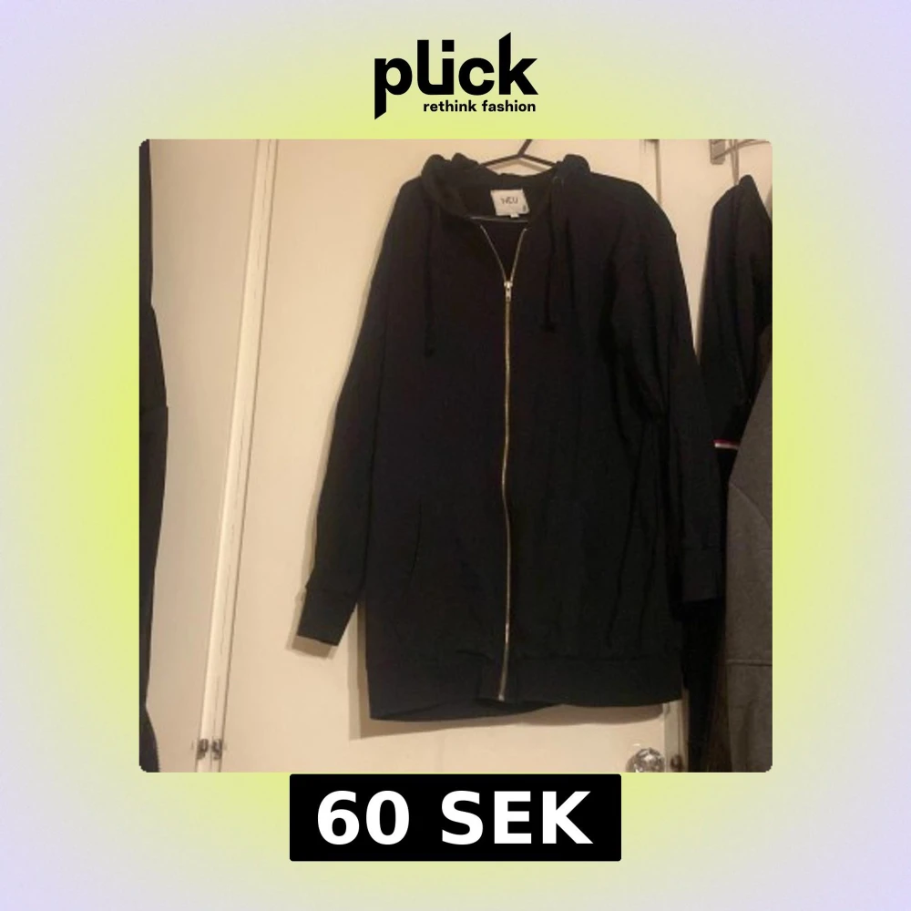 Säljer en svart hoodie från NEU i storlek M. Den har en dragkedja framtill och en bekväm huva med snörning. Perfekt för en avslappnad stil.