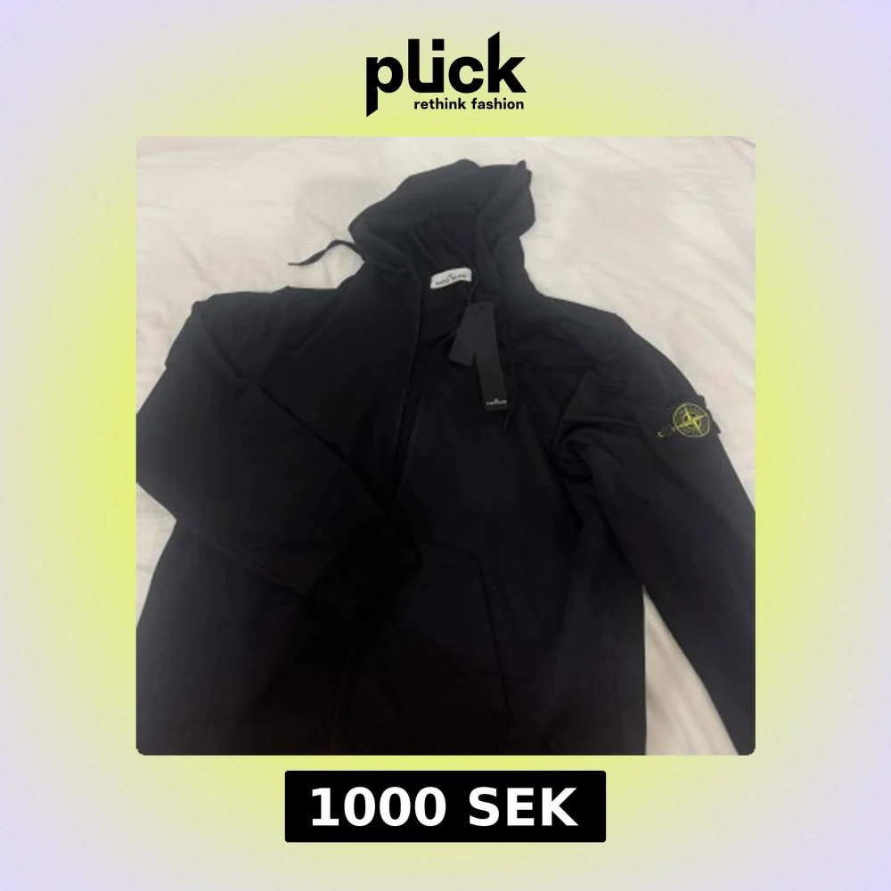 Svart hoodiejacka från Stone Island med klassisk patch på ärmen. Jackan har dragkedja framtill, huva med snörning och ribbade muddar. Tillverkad i mjuk bomull för en skön och avslappnad stil. Perfekt för dig som gillar streetwear och vill ha något stilrent. Köpt av en annan säljare så ej säker på om den är äkta!