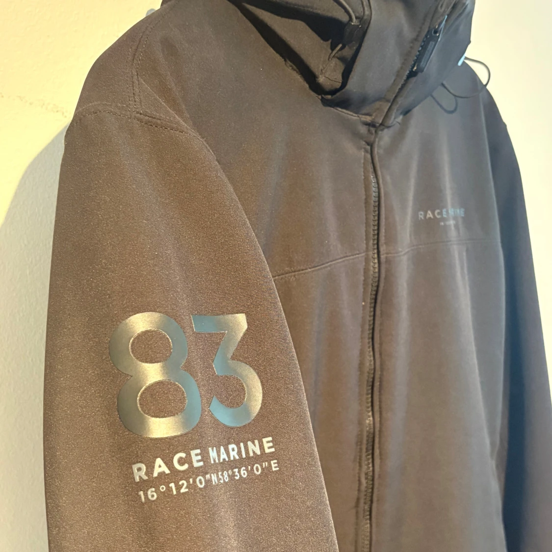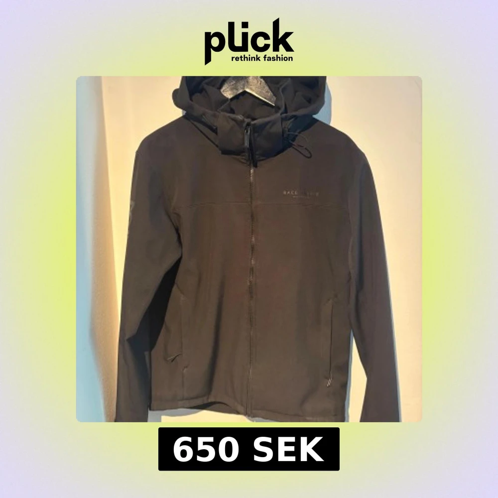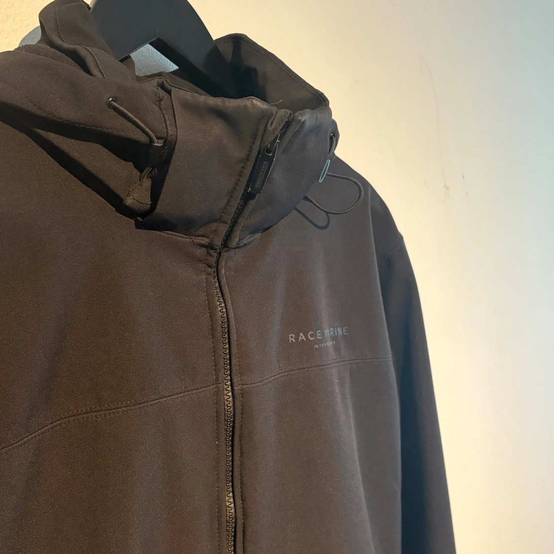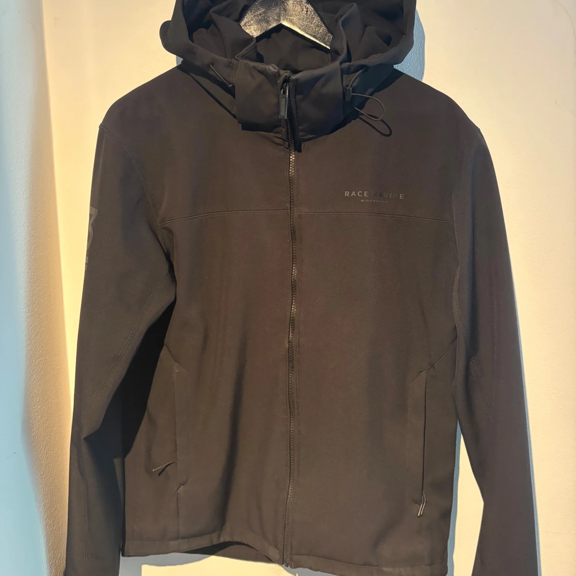 Svart softchell jacka från Race Marine med avtagbar huva och dragkedja framtill. Perfekt höst eller vår jacka. Den är varmare än en vindjacka då den har fleece material inuti. Nypris 1000kr. Skriv om du har några frågor!