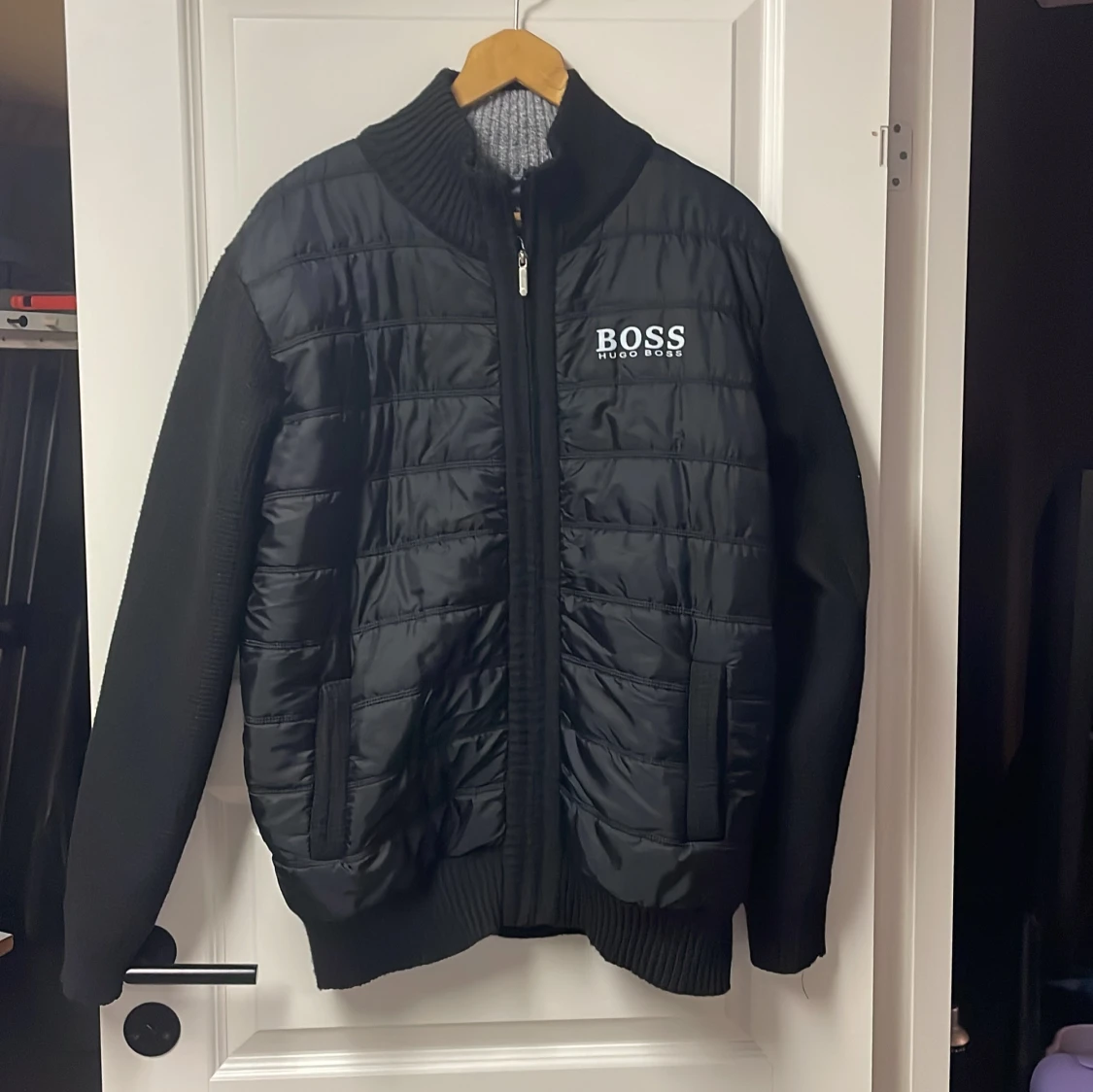 Snygg svart jacka från Boss med quiltad framsida och dragkedja. Insidan har ett coolt camouflagemönster i svart och vitt. Perfekt för kyligare dagar med sin långa ärmar och ribbade detaljer.
