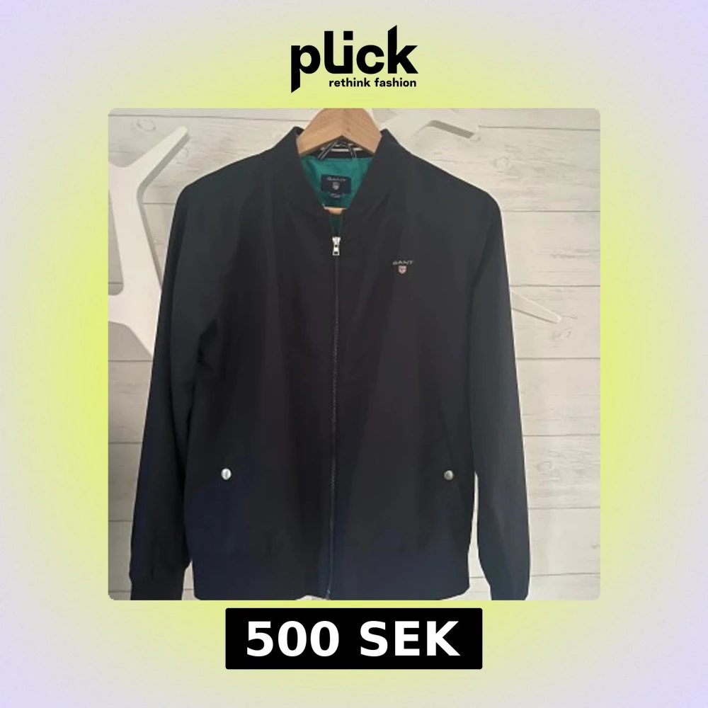 Snygg svart jacka från GANT med dragkedja och ribbad krage. Jackan har en stilren design med broderad logotyp på bröstet. Perfekt för våren och sommaren. Svagt namnad (se bild 3). Hör av dig vid minsta fråga!