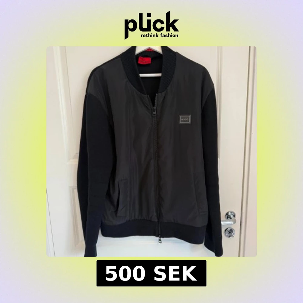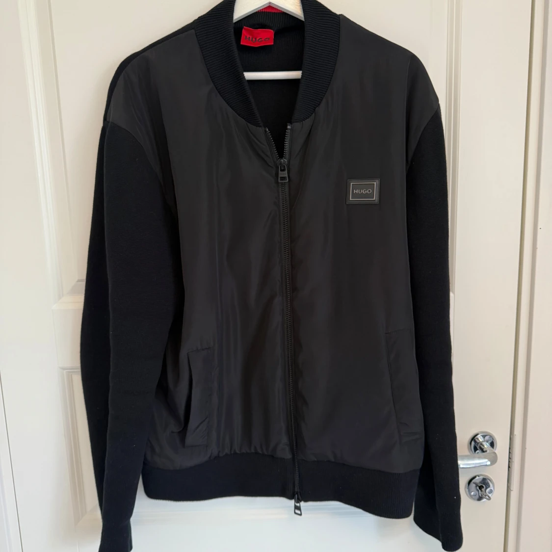 Snygg svart jacka från Hugo med ribbade muddar och krage. Jackan har dragkedja framtill, två fickor och en diskret logotyp på bröstet. Perfekt för en stilren och modern look.