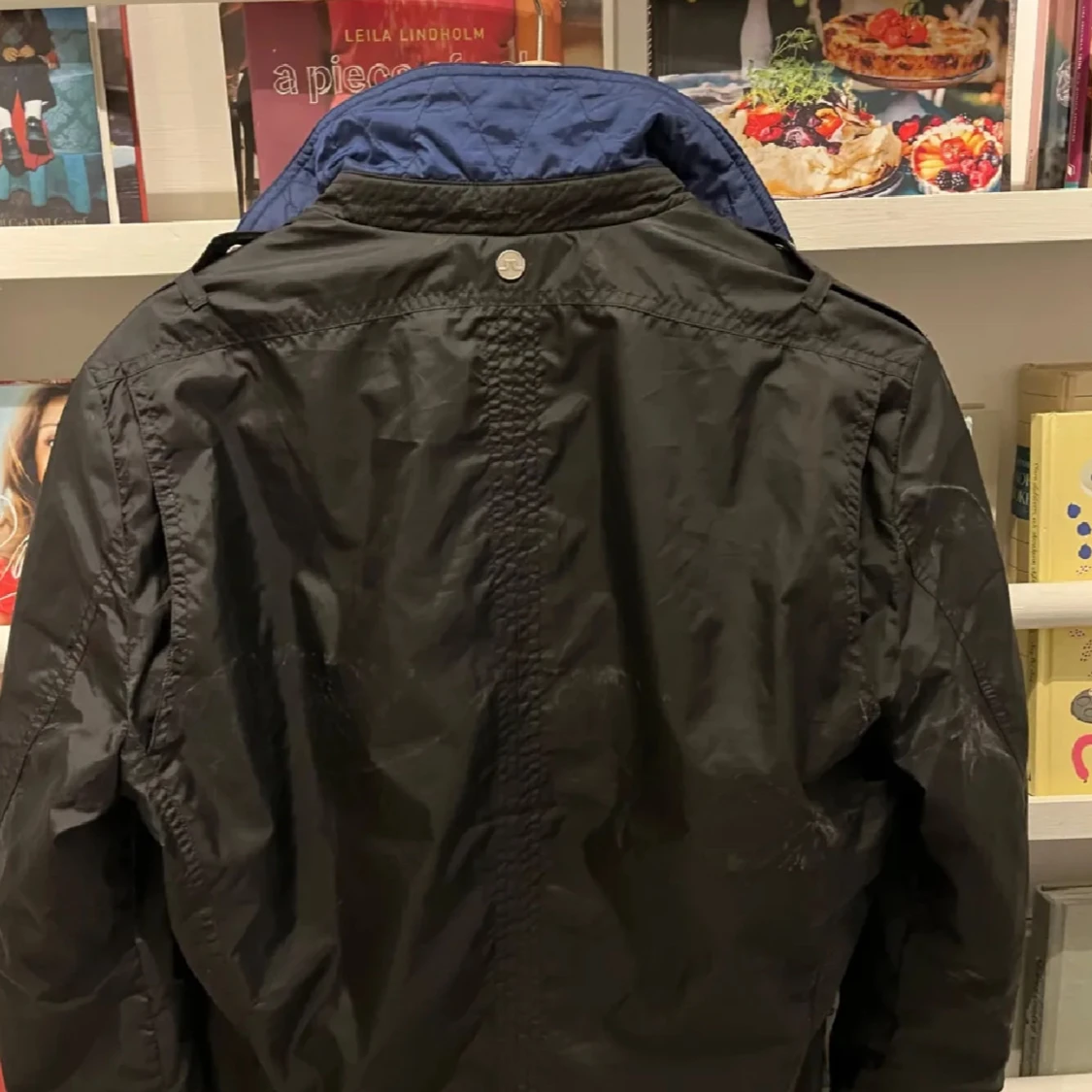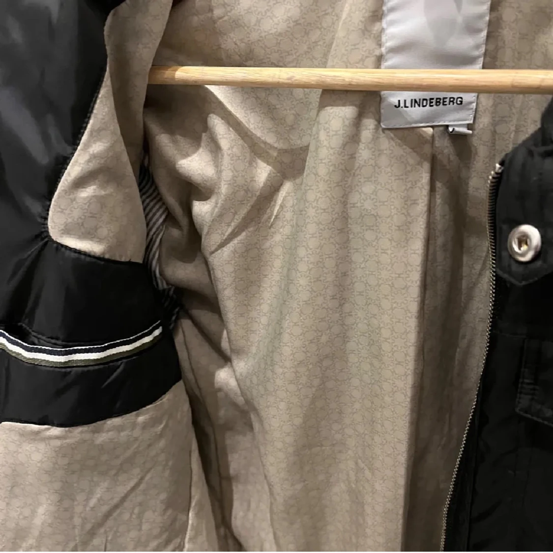 Snygg svart jacka från J.Lindeberg med dragkedja och knappar. Den har en klassisk krage och två bröstfickor med knappstängning. Perfekt för en stilren look. Står att det är en storlek S men passar XS Skriv om frågor