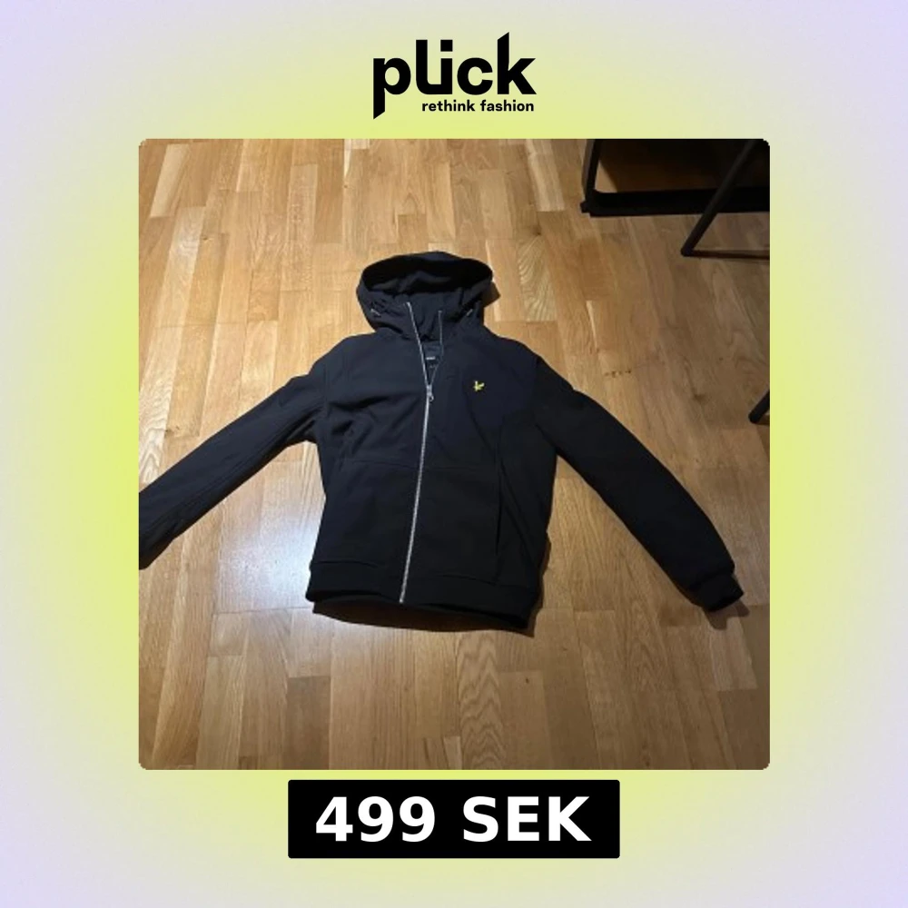 Snygg svart jacka från Lyle & Scott med dragkedja och huva. Jackan har en broderad gul logotyp på bröstet och långa ärmar. Perfekt för en stilren look.