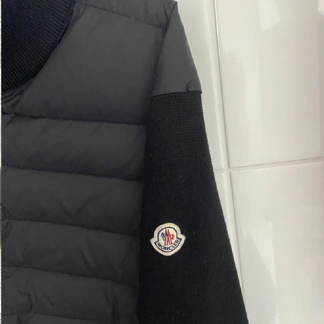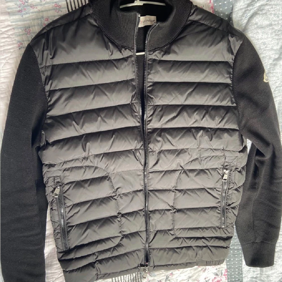 Säljer en snygg svart jacka från Moncler i mycket bra skick. Jackan har en fin design med dragkedja framtill och långa ärmar. Och den är både stilren och bekväm. Passar perfekt för en casual look eller en dag ute på stan.