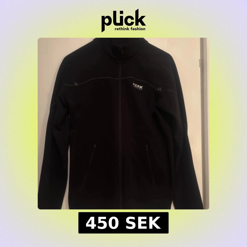 Säljer en stilren svart jacka från Peak Performance med dragkedja framtill. Jackan har långa ärmar och en diskret logga på bröstet. Perfekt för en sportig look eller vardagsbruk. Köpt för flera år sedan.