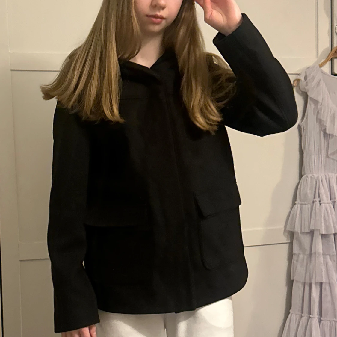 Säljer en svart jacka från Primark med klassisk krage och stora fickor framtill. Jackan har lång ärm och rak passform, perfekt för en stilren look. Passar till många olika outfits.