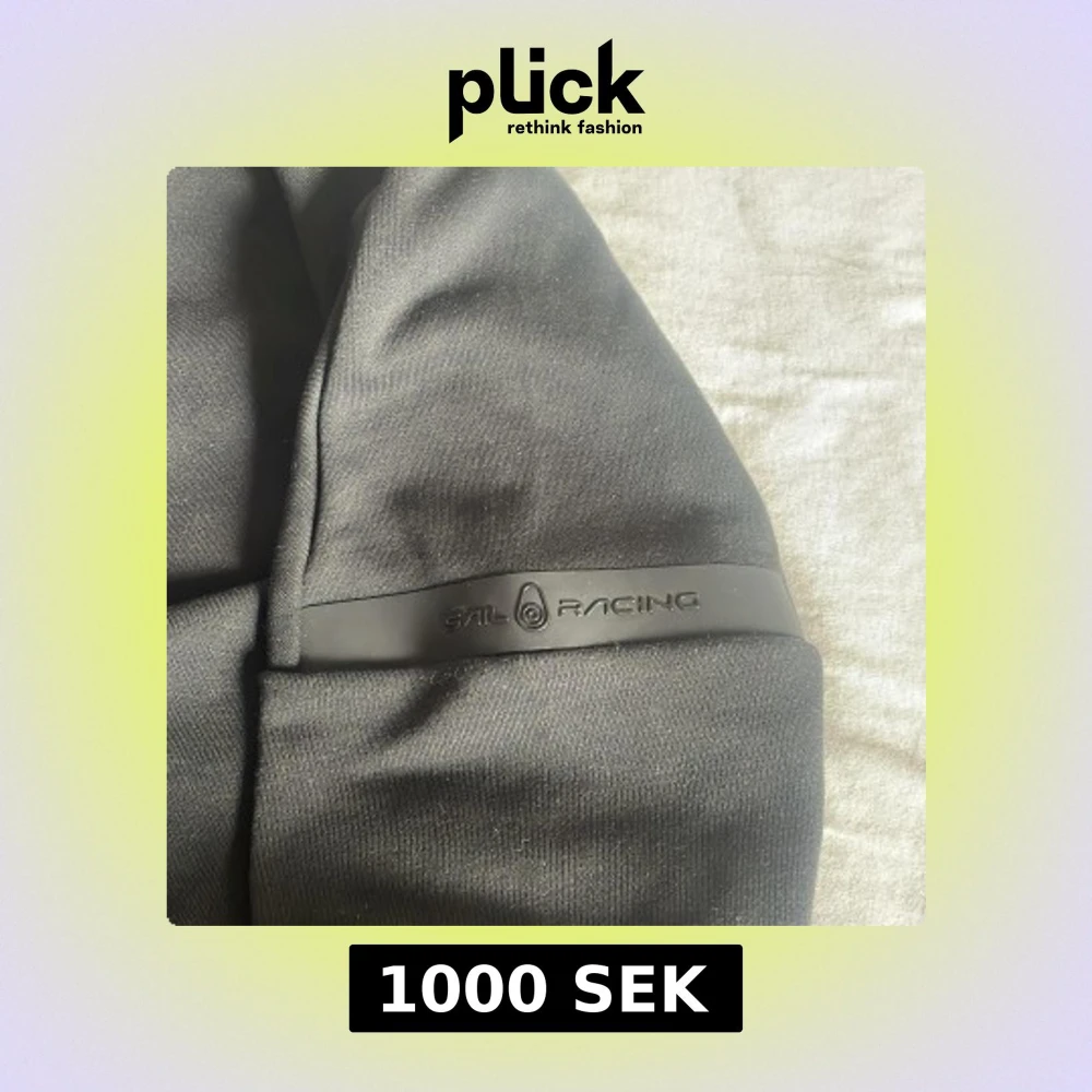 Säljer en svart jacka från Sail Racing med dragkedja framtill och två fickor med dragkedja. Jackan har hög krage och en stilren design, perfekt för dig som gillar sportig stil.