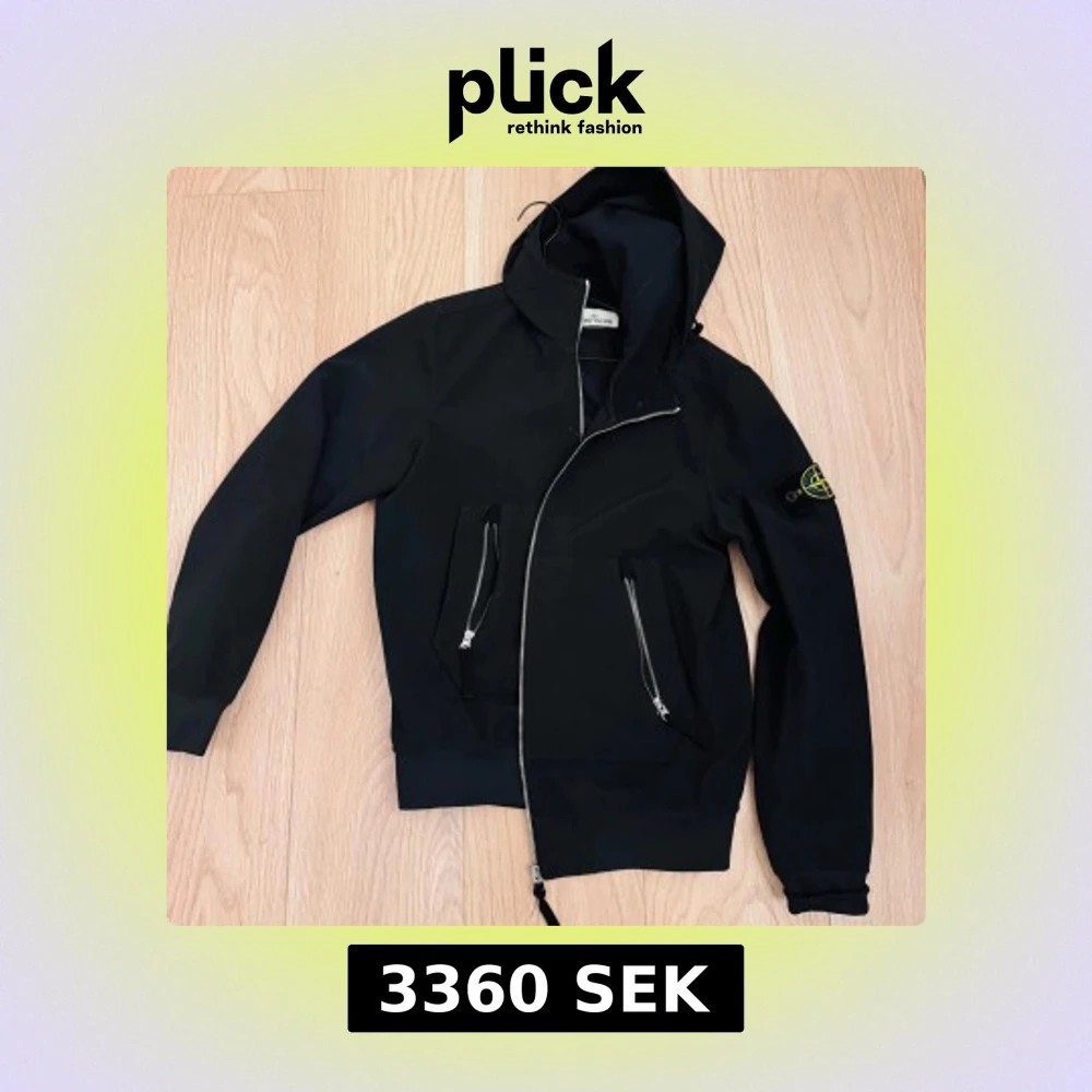 Snygg svart jacka från Stone Island med dragkedja och huva. Storlek S, men passar även storlek M. Ikonisk jacka!