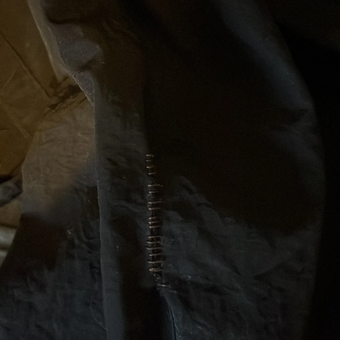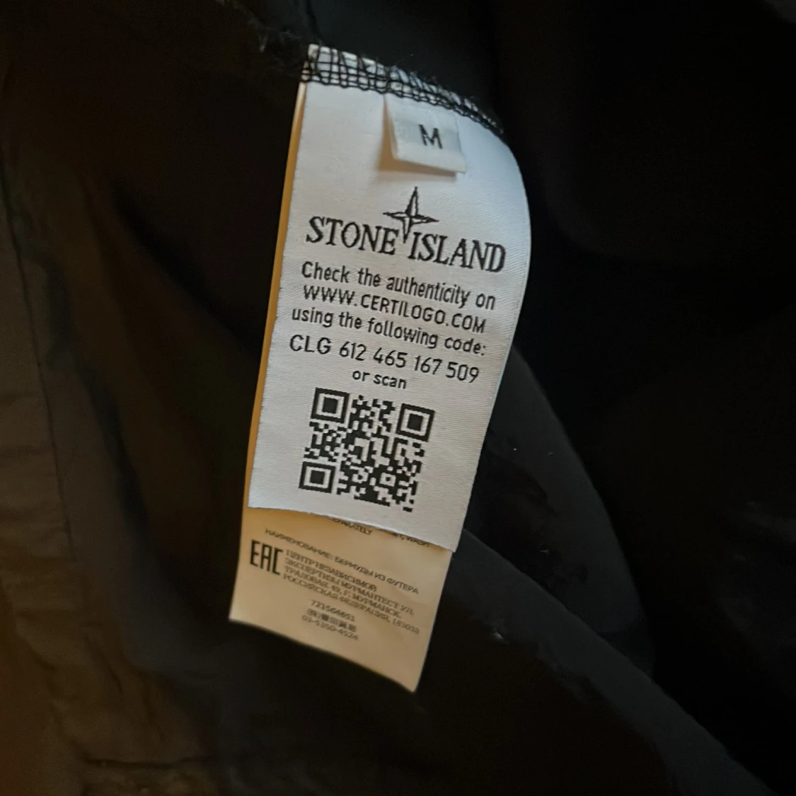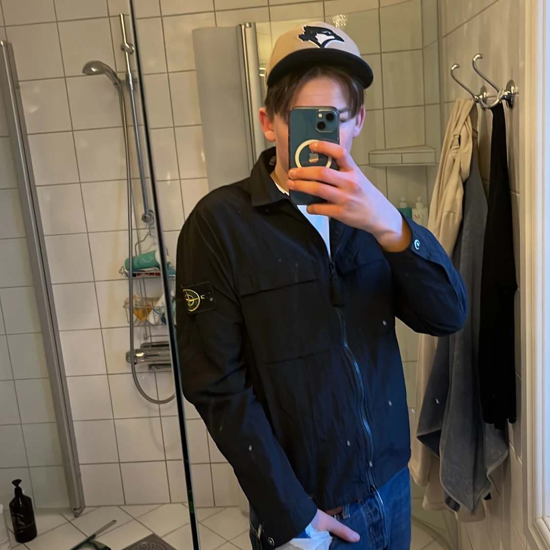 Säljer en stilren svart jacka från Stone Island. Jackan har en dragkedja framtill och två bröstfickor. Den är långärmad och har en klassisk krage. Perfekt för en cool och avslappnad stil.