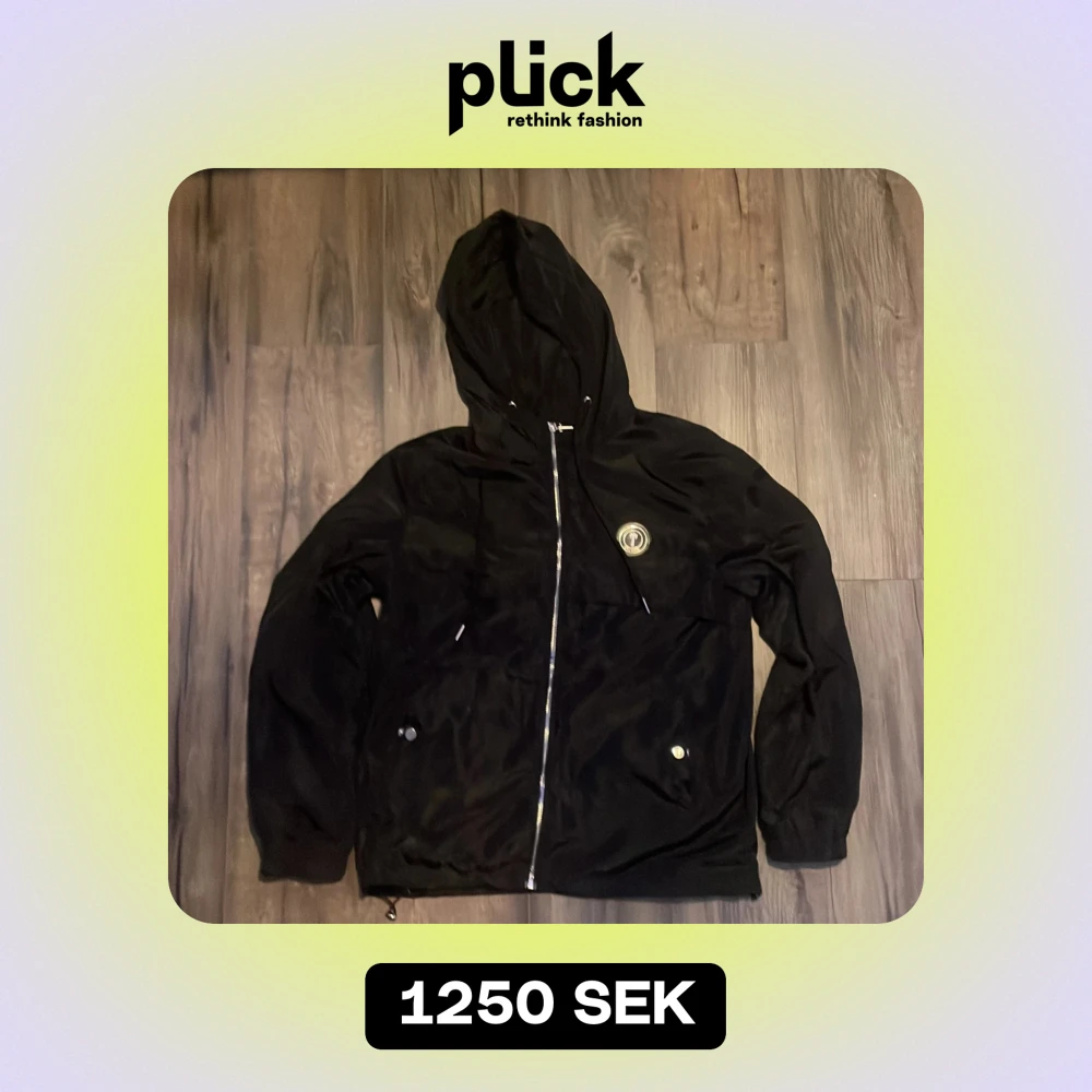 Säljer en svart jacka från Trapstar i storlek M. Jackan har en dragkedja framtill och en huva. Den är dekorerad med ett märke på bröstet och texten 'Trapstar' på ryggen. Perfekt för höst och vår!