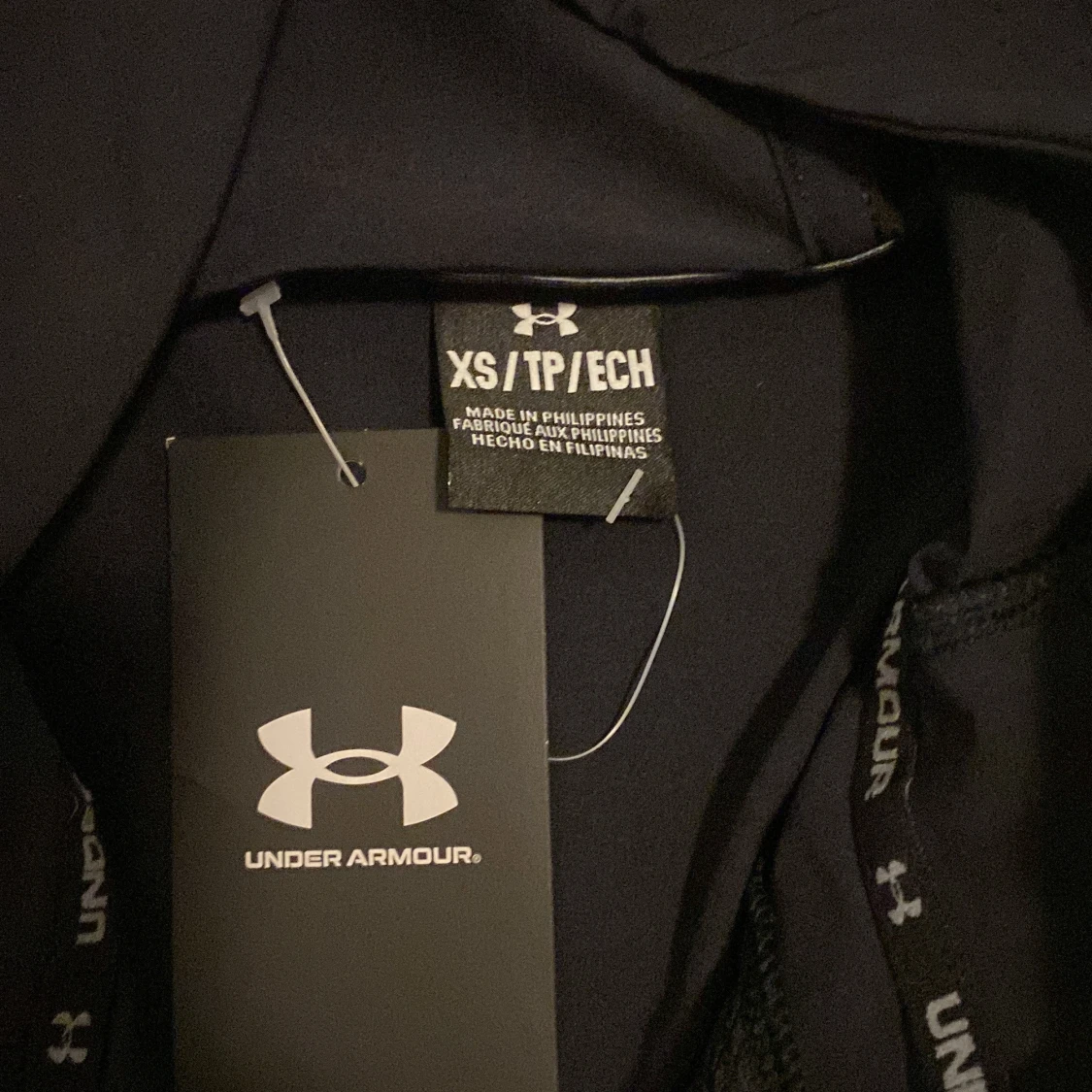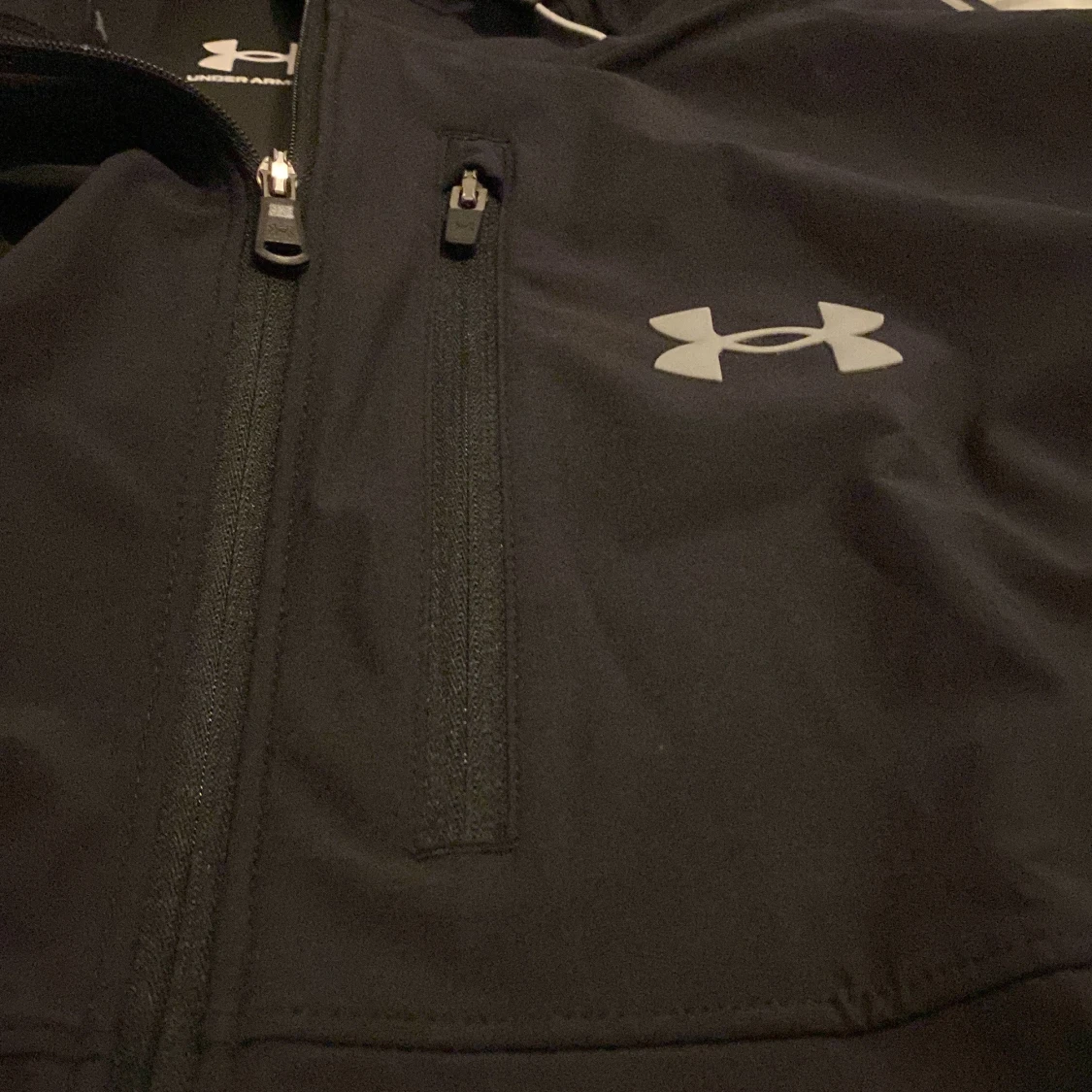 (Säljer pågrund av att min son inte ville ha den modellen)Säljer en svart jacka från Under Armour i nytt skick. Den har en dragkedja framtill och en praktisk huva. Perfekt för träning eller vardagsbruk. Jackan är långärmad och har en stilren design med Under Armour-loggan på bröstet. (Aldrig använts) Inga återbud