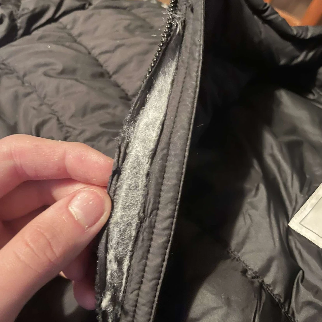 Säljer en svart quiltad jacka från Woolrich. Jackan har en dragkedja framtill och är långärmad. Perfekt för kyligare dagar med sin stilrena design och bekväma passform. Den är lite sönder inuti vid dragkedjan ”syns på bilden” men de syns inte när man har på sig den. Har av ett vid funderingar.