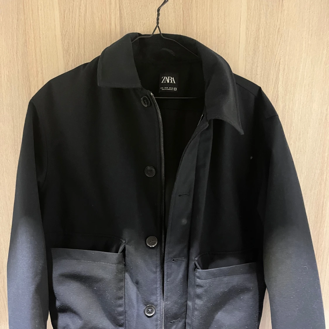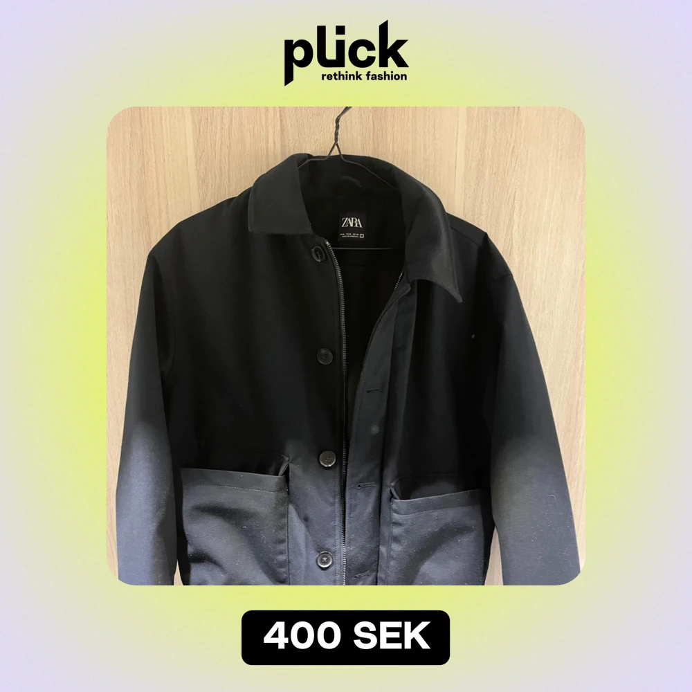 Säljer en varsamt använd jacka från Zara. Den har en klassisk krage och stängs med både dragkedja och knappar. Perfekt för höst och vår, med praktiska fickor framtill. Jackan är i mycket bra skick och passar till många olika outfits.