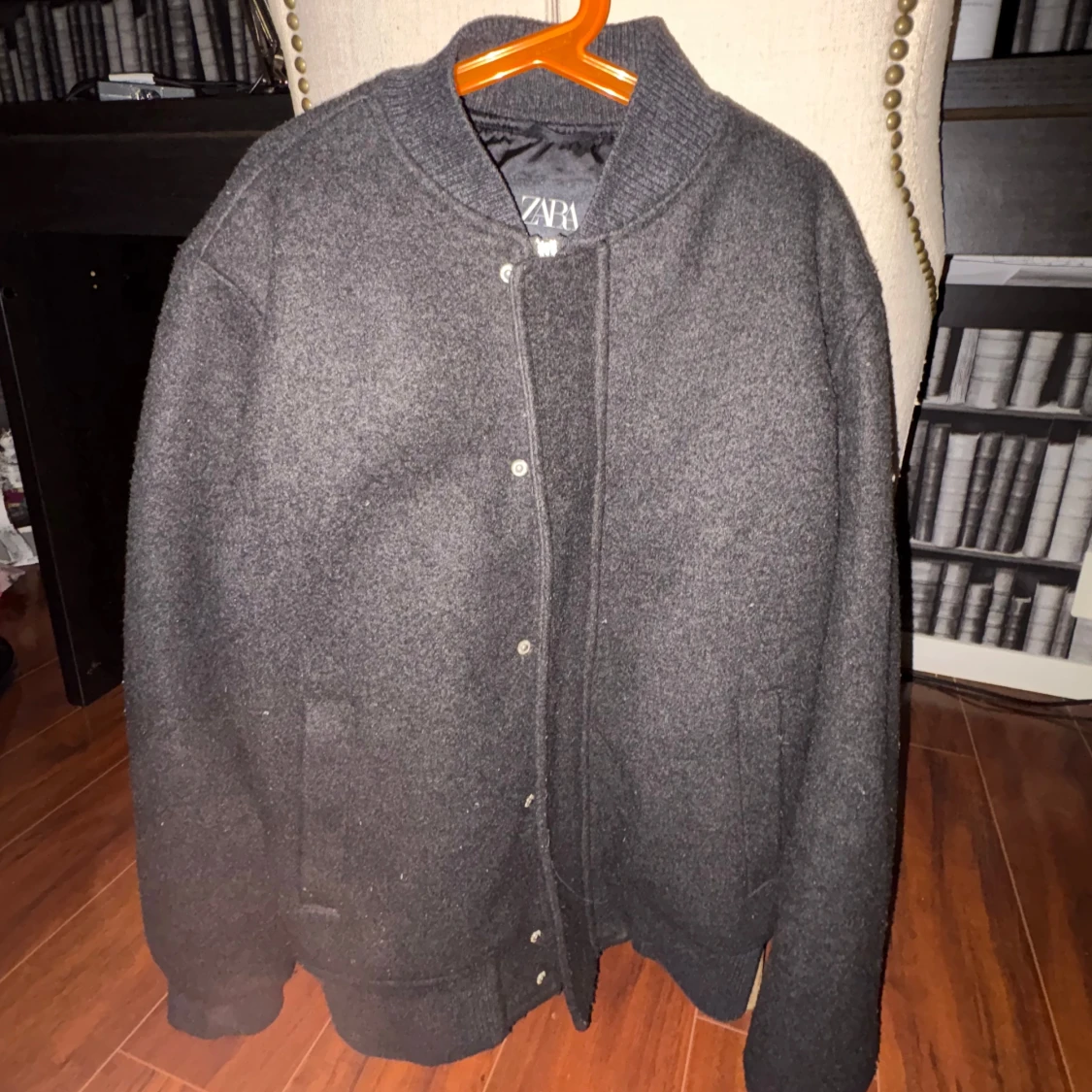 Säljer en stilren svart jacka från Zara i storlek S. Jackan har en klassisk design med knappar framtill och är långärmad. Perfekt för kyligare dagar och passar till många olika outfits.