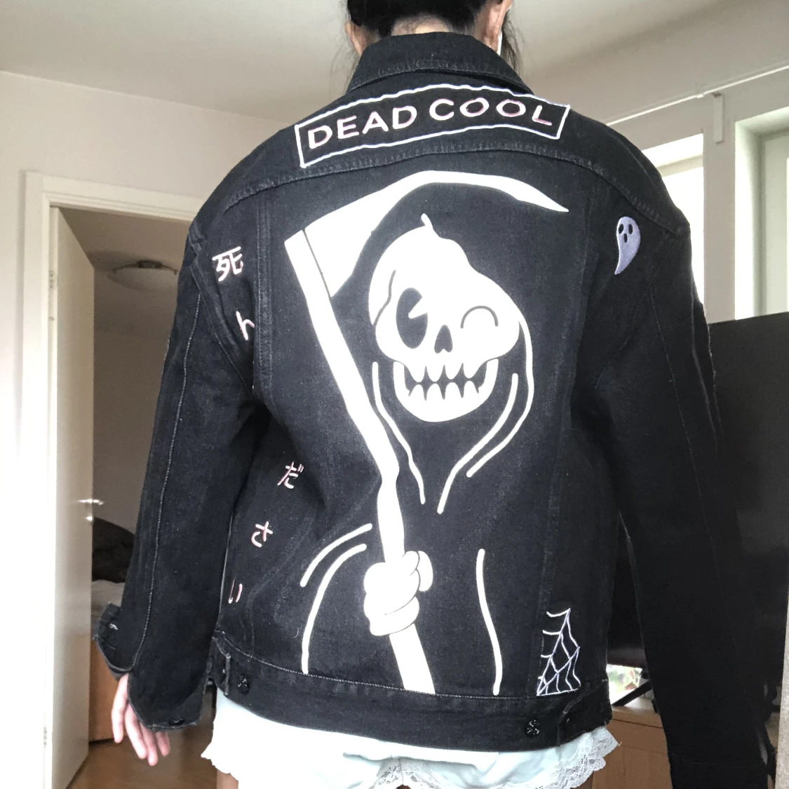The dead cool jacket i svart denim och rosa & vita broderingar över hela jackan. Har ett tryck på ryggen. Säljs pga för liten för gubben. Ny och endbart provad 🤍