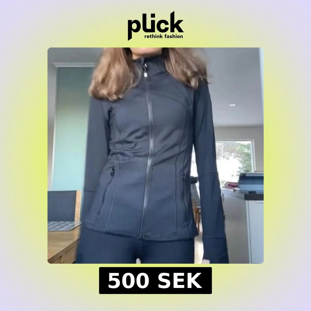 Snygg och funktionell svart jacka som liknar den från Lululemon med dragkedja framtill och praktiska fickor. Jackan har en figurnära passform och långa ärmar, perfekt för allt. Helt ny, aldrig använd😍 använd gärna ”köp nu”❣️