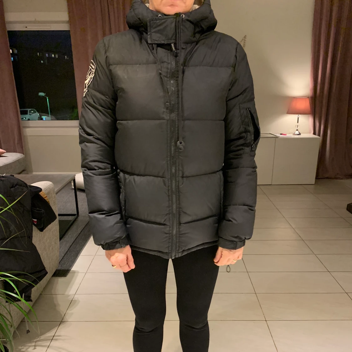 En dbrand jacka storlek M men passar även en S (hon på bilden är en S). Använd en vinter och är i fint skick.