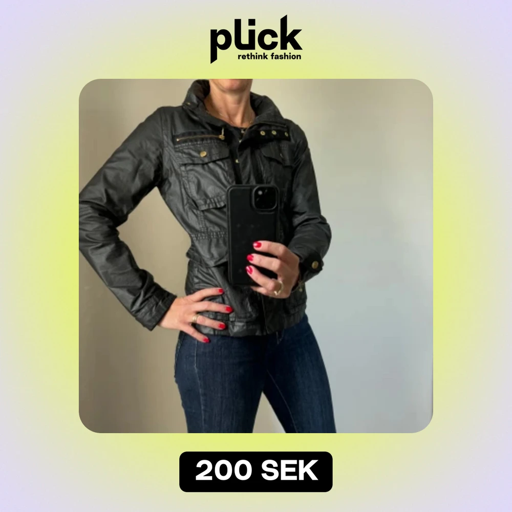 Säljer en snygg svart jacka med dragkedja och knappar. Den har en cool stil med flera fickor och en hög krage. Perfekt för höst och vår, och den är i bra skick. Passar till både vardag och fest!