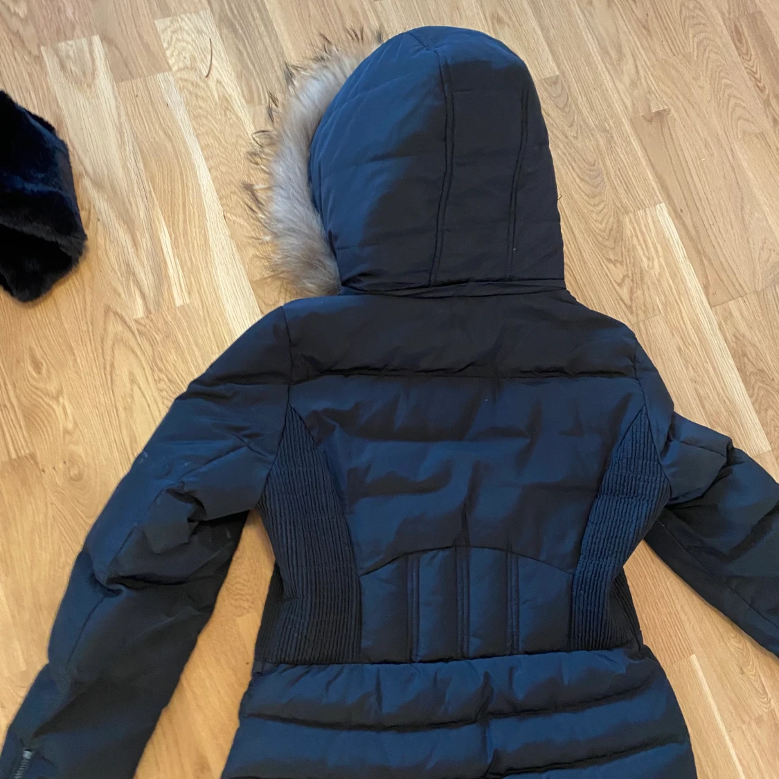 Säljer svart jacka med päls luva då den inte använts ännu! Passar både Small och MEDIUM.