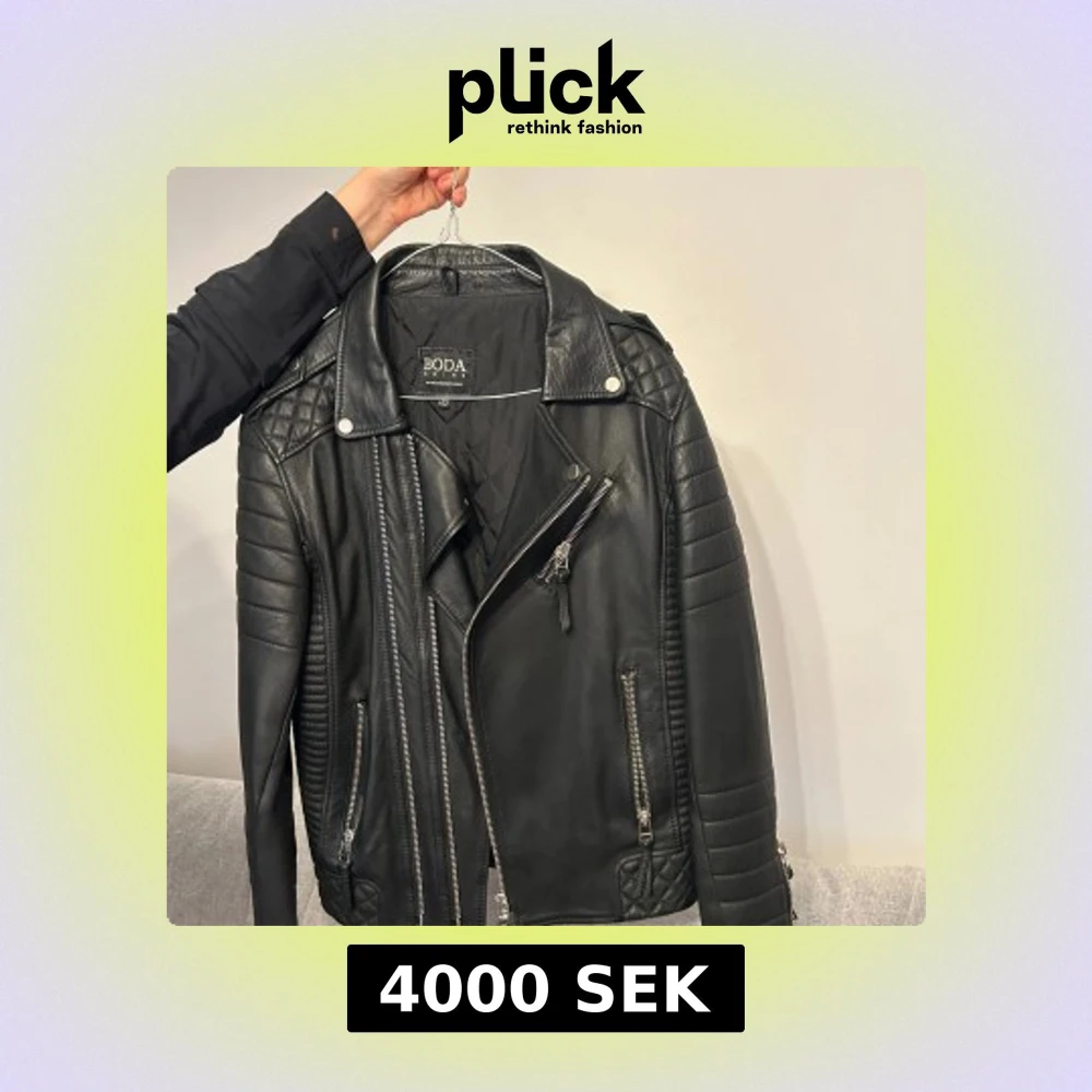 Snygg svart skinnjacka från Boda Skins med coola detaljer som dragkedjor och quiltade axlar. Perfekt för en edgy look. Jackan har långa ärmar och en klassisk bikerstil. Storlek M
