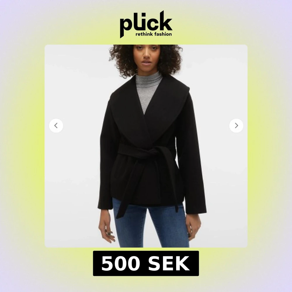 Trendig svart jacka / kappa i strl XS från Vero Moda med bred krage och knytbälte i midjan. Har aldrig använt den då jag köpte två sånna kappor i olika storlekar. Passar perfekt till kallare väder, både höst och vinter.