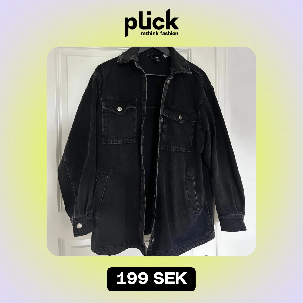 Säljer en svart jeansjacka i bra skick. Den har en klassisk design med två bröstfickor med knappar och två sidofickor. Jackan är långärmad och har en avslappnad passform, perfekt för höst och vår. Passar både till vardags och lite mer uppklädda tillfällen.