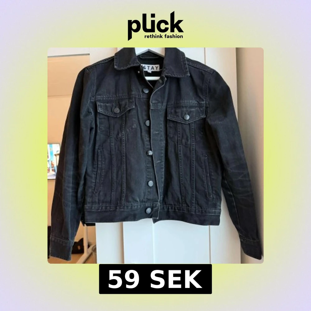 Snygg svart jeansjacka från Stay med klassisk design. Jackan har knappar framtill och två bröstfickor med lock. Perfekt för en cool och avslappnad stil. Finns slitage på knapp