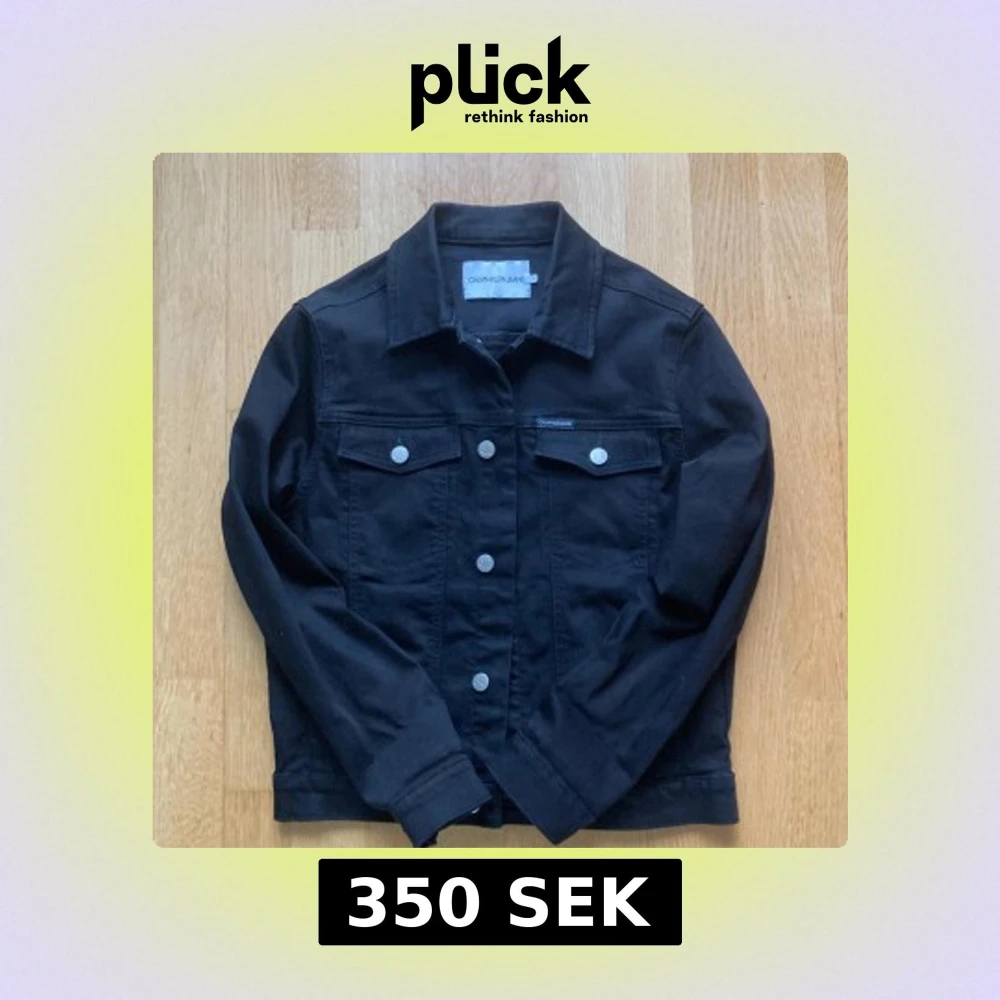 Snygg svart jeansjacka från Calvin Klein med stora vita bokstäver på ryggen. Jackan har en klassisk design med knappar framtill och två bröstfickor med lock. Perfekt för en stilren look!