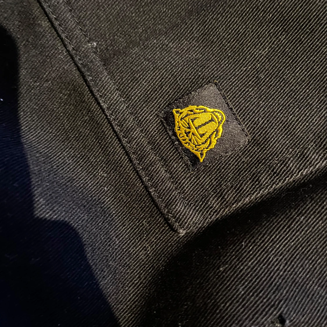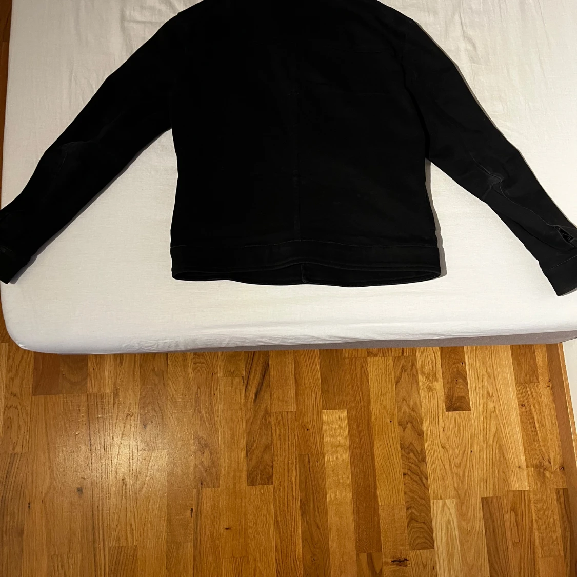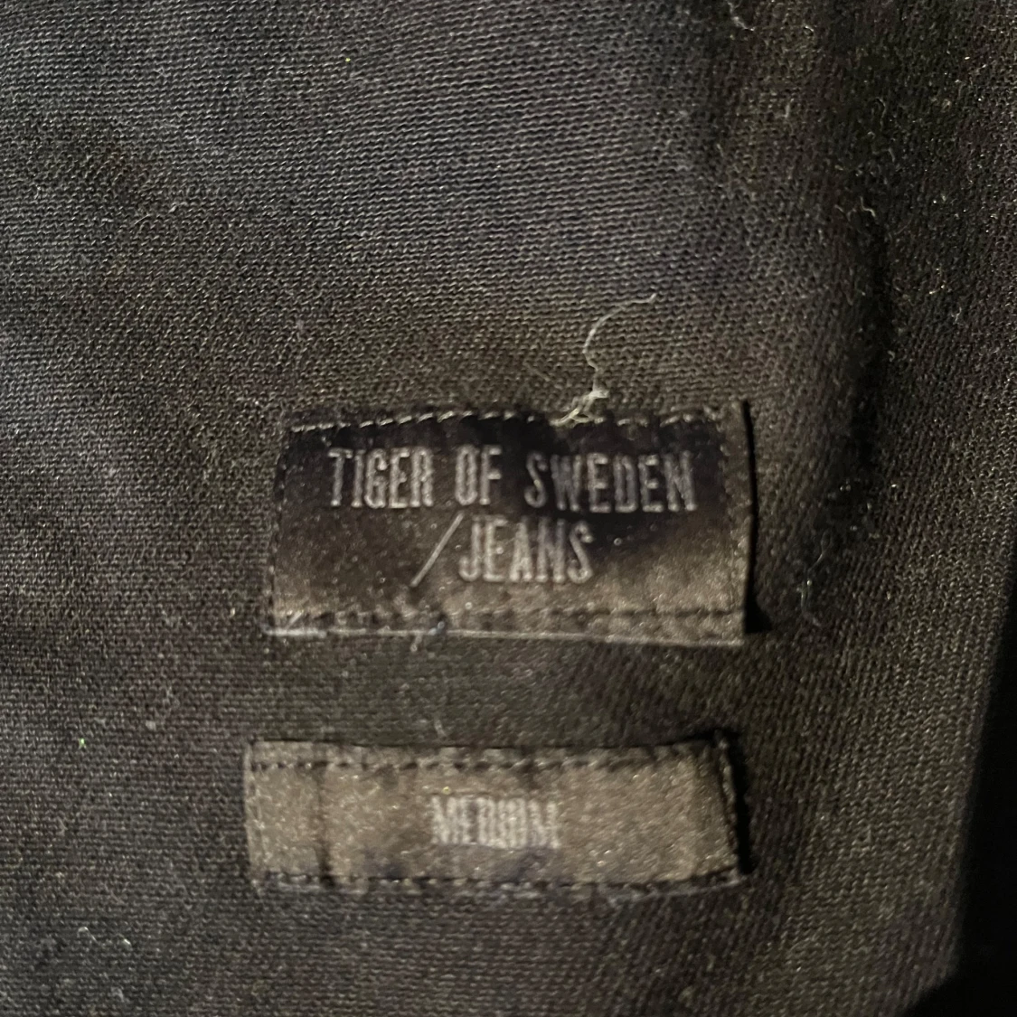Snygg svart jeansjacka från Tiger of Sweden med klassisk design. Jackan har knappar framtill och en diskret logga i gult på bröstfickan. Perfekt för en stilren look.