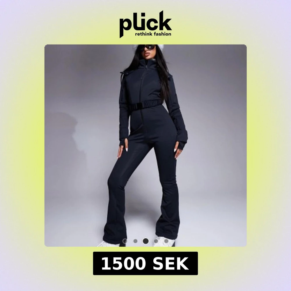 Snygg svart skid jumpsuit med dragkedja och bälte i midjan. Utsvängda ben och fuskpäls. Perfekt för en stilren look. Ordinarie pris 1849kr