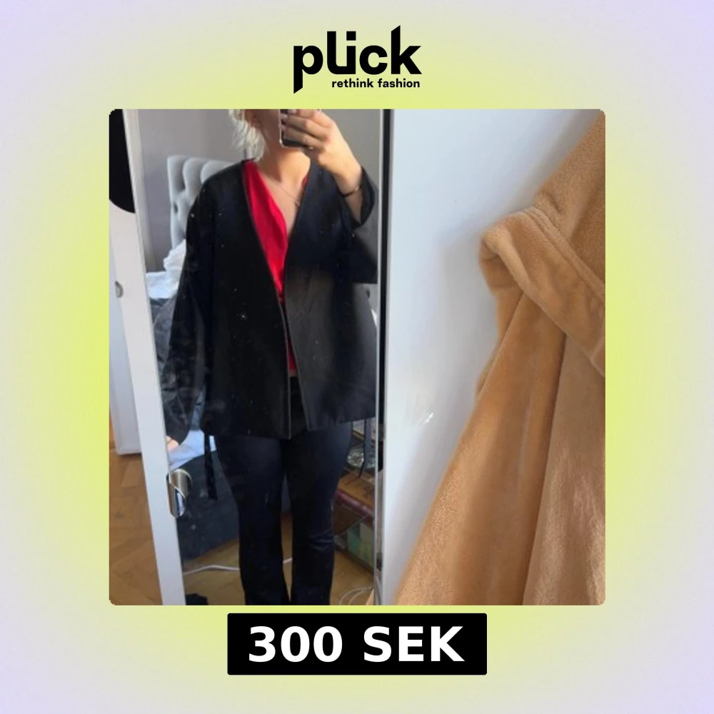 Super snygg svart kappa som är en perfekt höst jacka. Går att ha både öppen och stängd som man ser på bilderna. Den har även en knapp utifall man skulle vilja stänga på så sätt❤️
