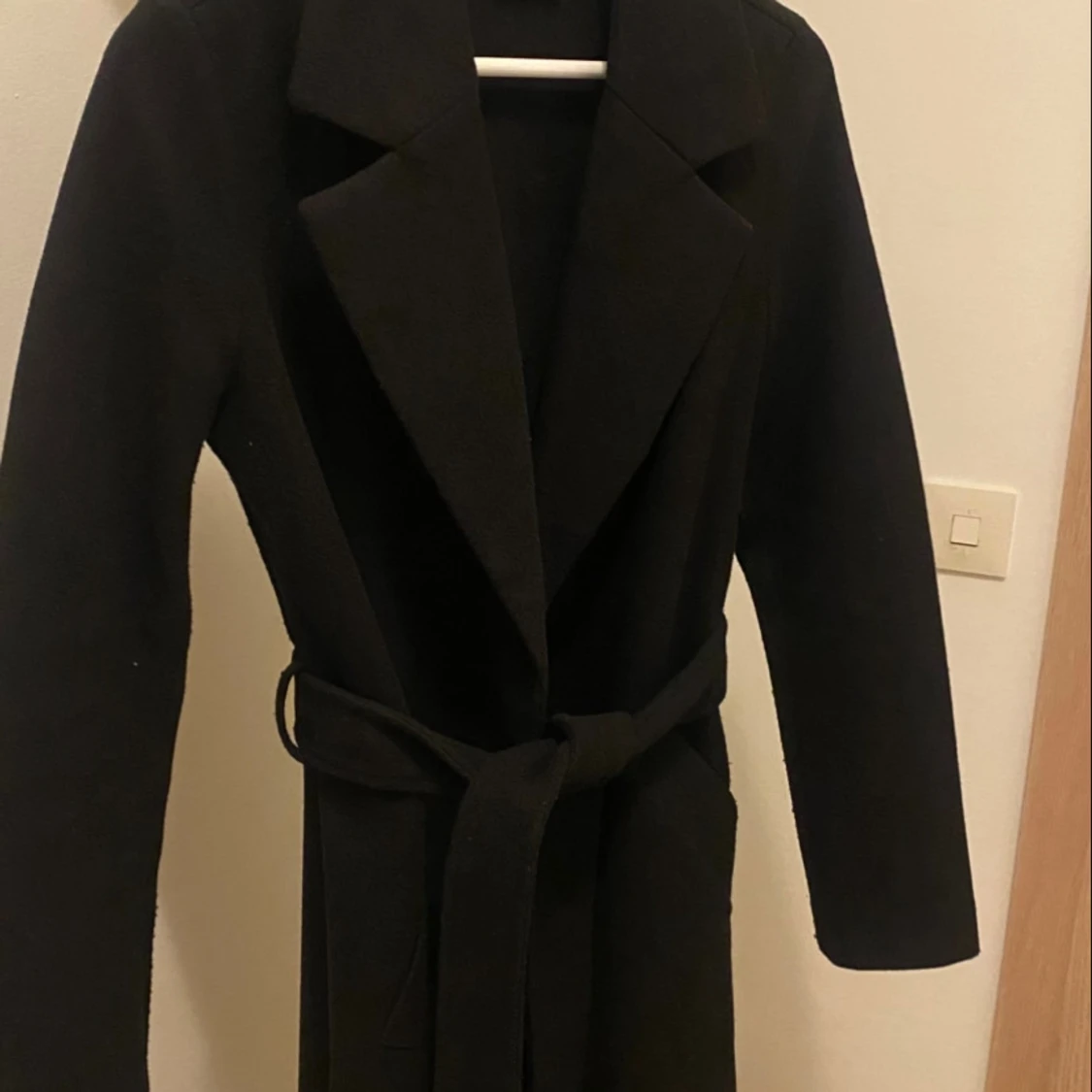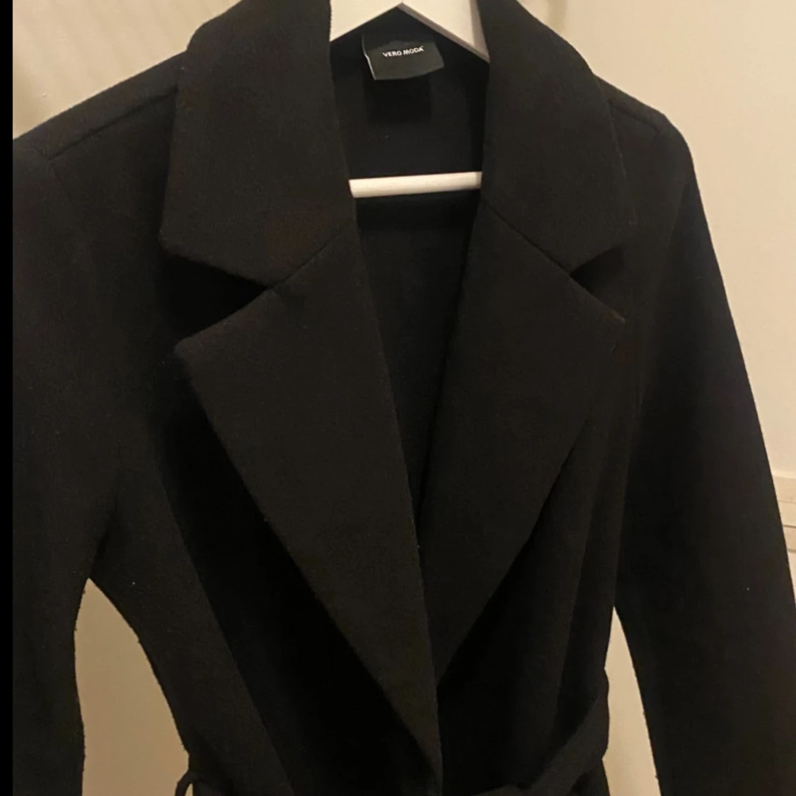 Svart medel lång kappa från VeroModa, använd nån gång annars som helt ny!
