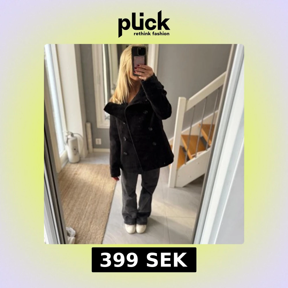 Säljer en svart kappa och bred krage. Jackan har en stilren, klassisk look med långärmade ärmar. Perfekt för dig som gillar en lite mer edgy och tidlös stil.