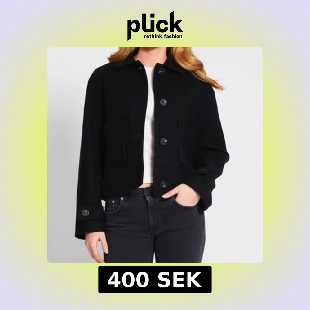 Snygg svart kappa med stora knappar framtill och två fickor.