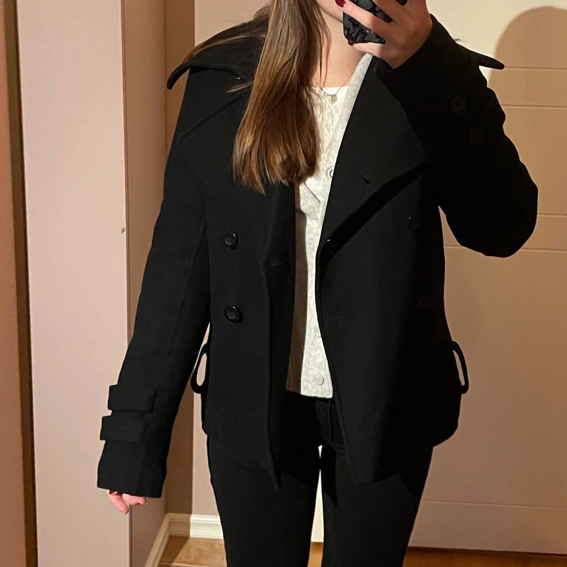 Säljer en svart kappa från Dcate i storlek 36. Jackan har dubbelknäppning och snygga detaljer vid ärmsluten. Jackan är väldigt varm så passar både höst och vintern!💗