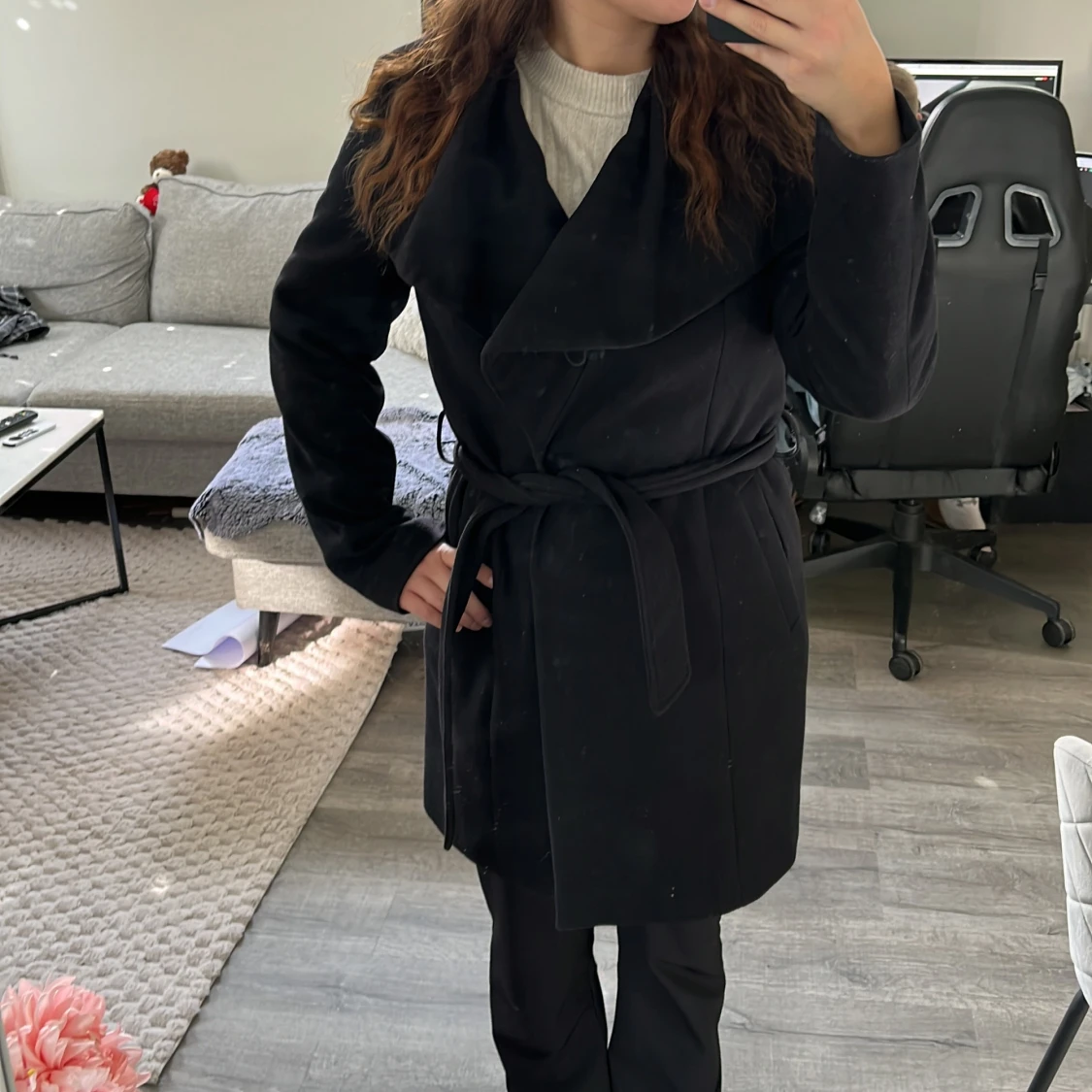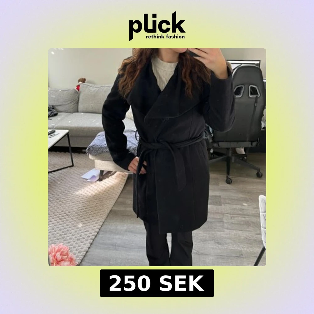 Stilren svart kappa från Esprit med bred krage och dekorativa guldknappar framtill. Kappan har en klassisk, längre modell och är fodrad på insidan för extra komfort.