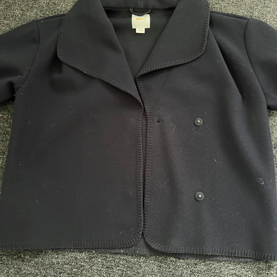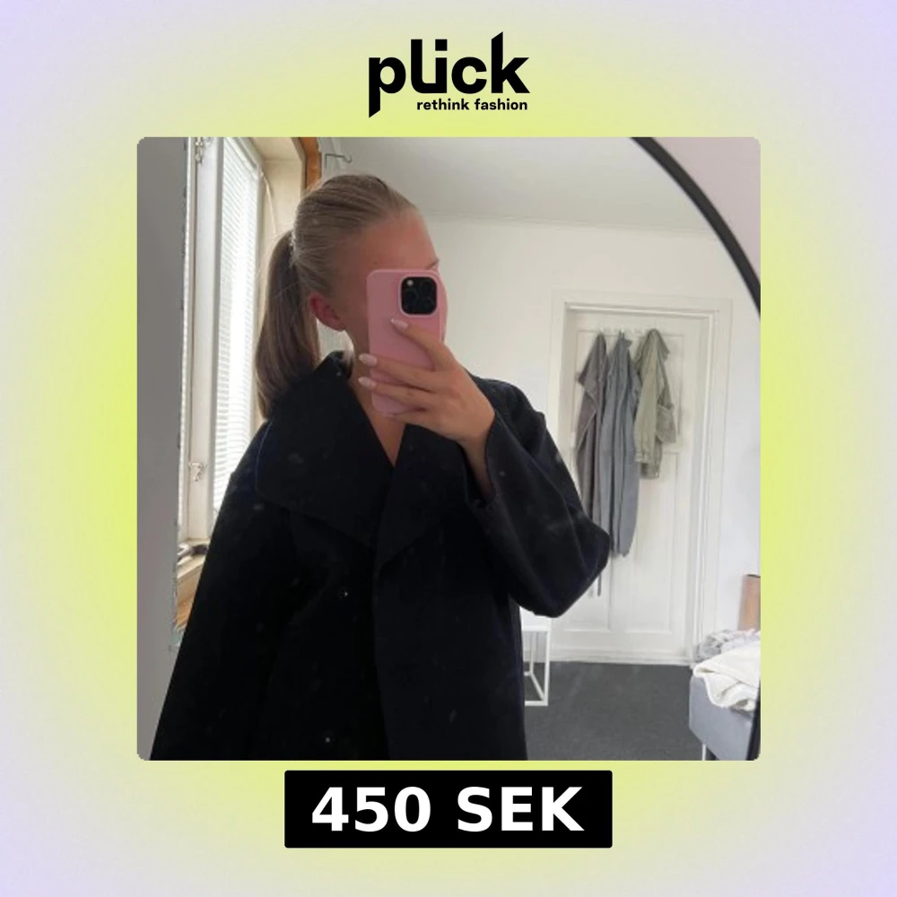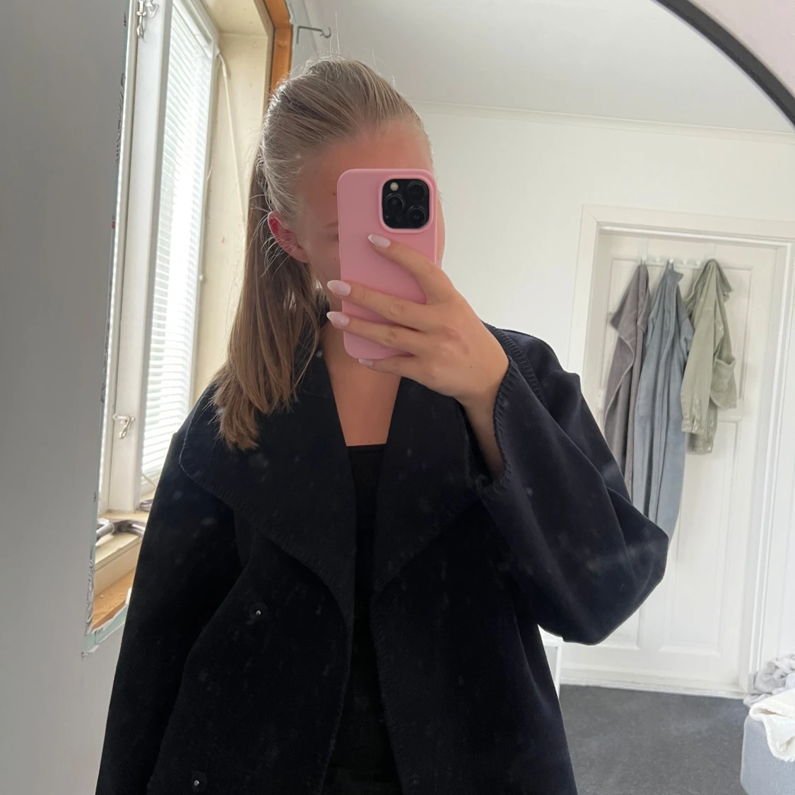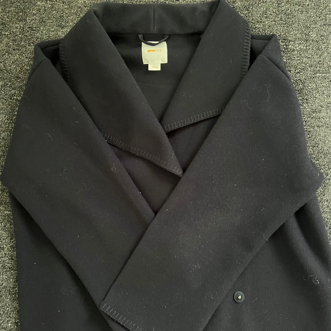 Stilren mörkblå kappa från Gina Tricot med bred krage och knappar framtill. Jackan har en rak passform och är i ett mjukt material som känns lite ulligt. Perfekt för dig som gillar en klassisk look med modern twist.