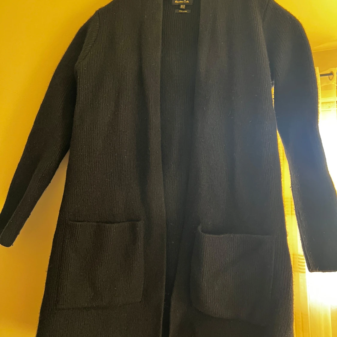 Elegant svart kappa från Massimo Dutti, tillverkad i Italien. Den har en stilren design med långa ärmar och praktiska fickor framtill. Perfekt för en sofistikerad look.storleken XS , det passar också som S