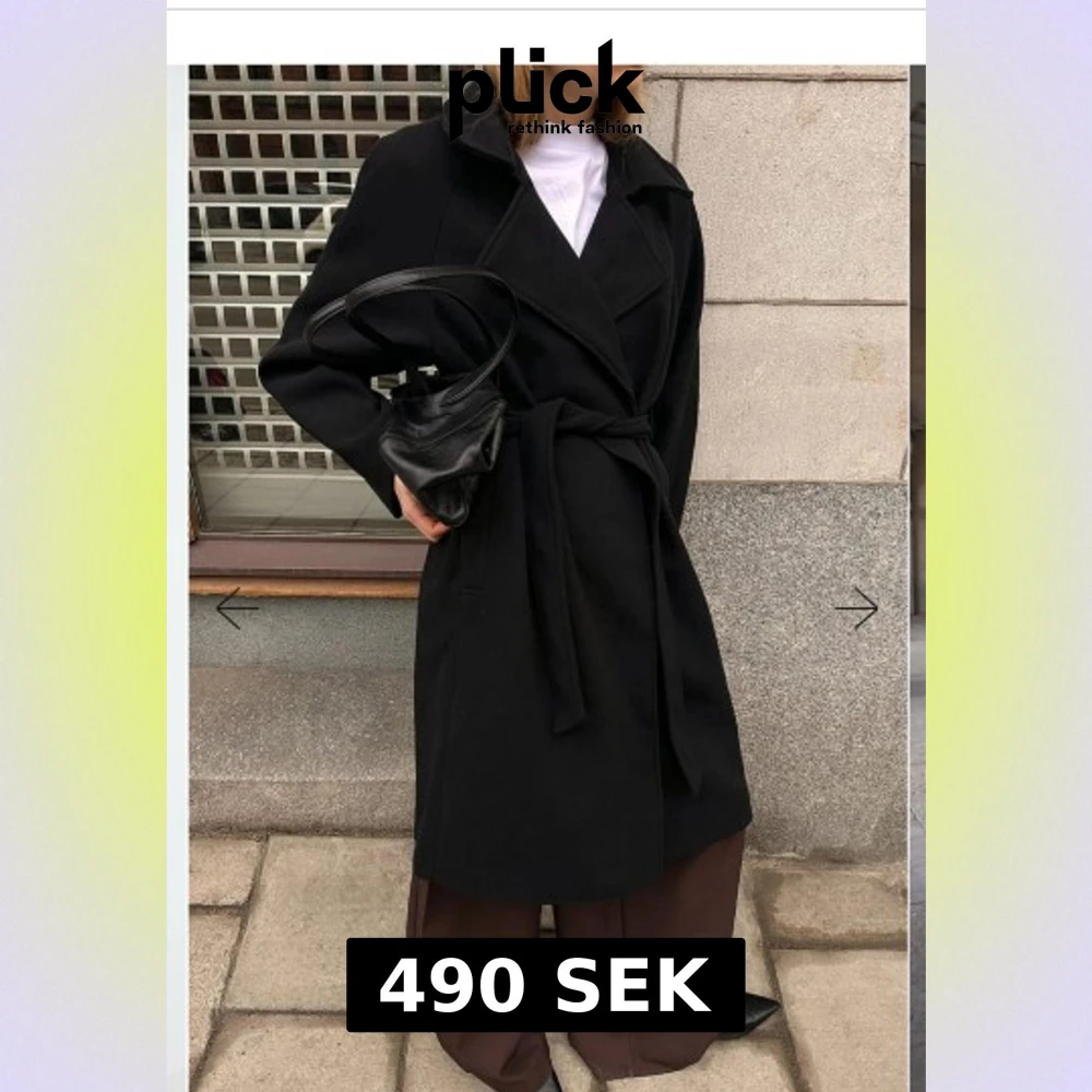 Stilren svart kappa från NA-KD med klassisk krage och knytbälte i midjan. Modellen är lång och har en loose passform med långa ärmar. Materialet är mjukt och känns lyxigt, perfekt för att höja din look under kyliga dagar. Nypris ligger på 1000kr